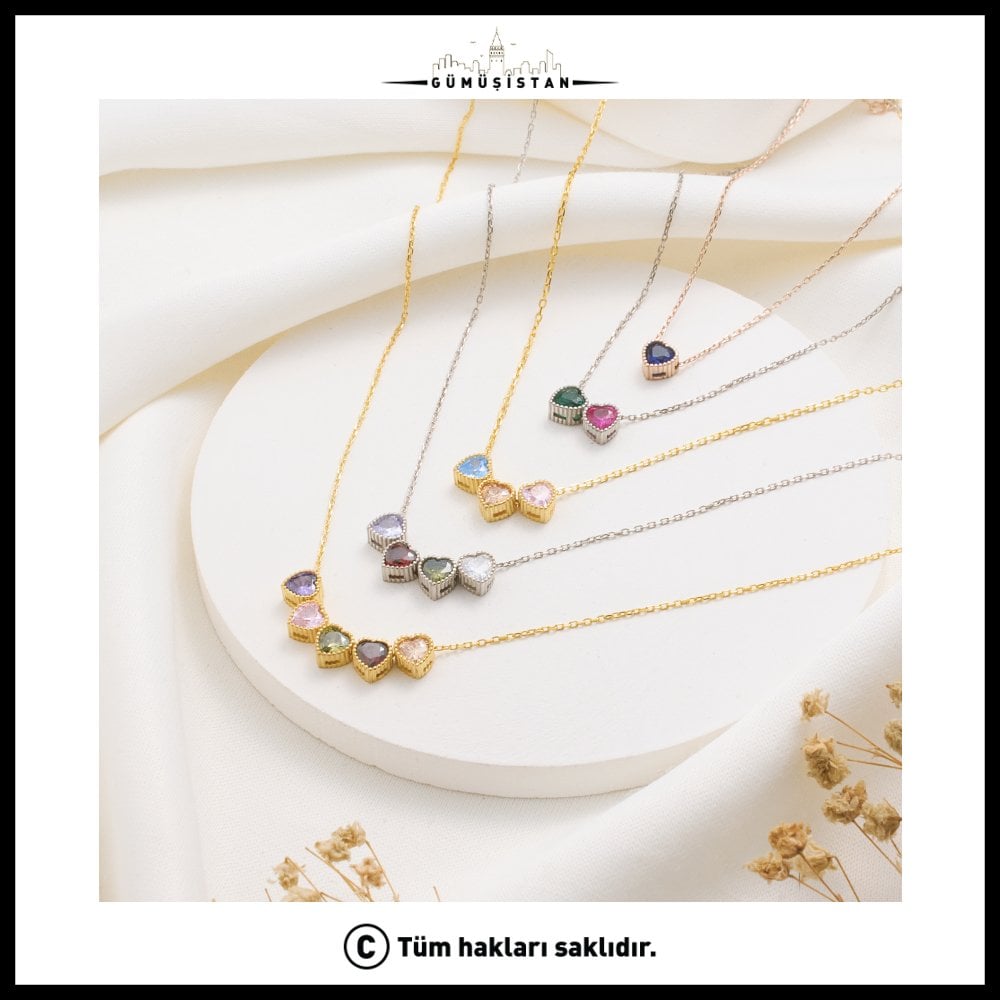 Kişiselleştirilebilir Taşlar: Kalp formundaki taşları dilediğiniz doğum ayı renklerine göre seçerek kolyenizi özelleştirin.