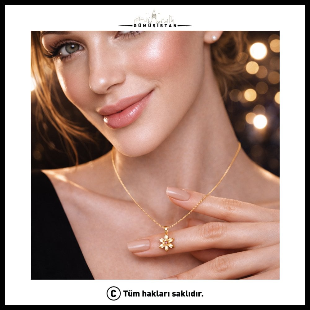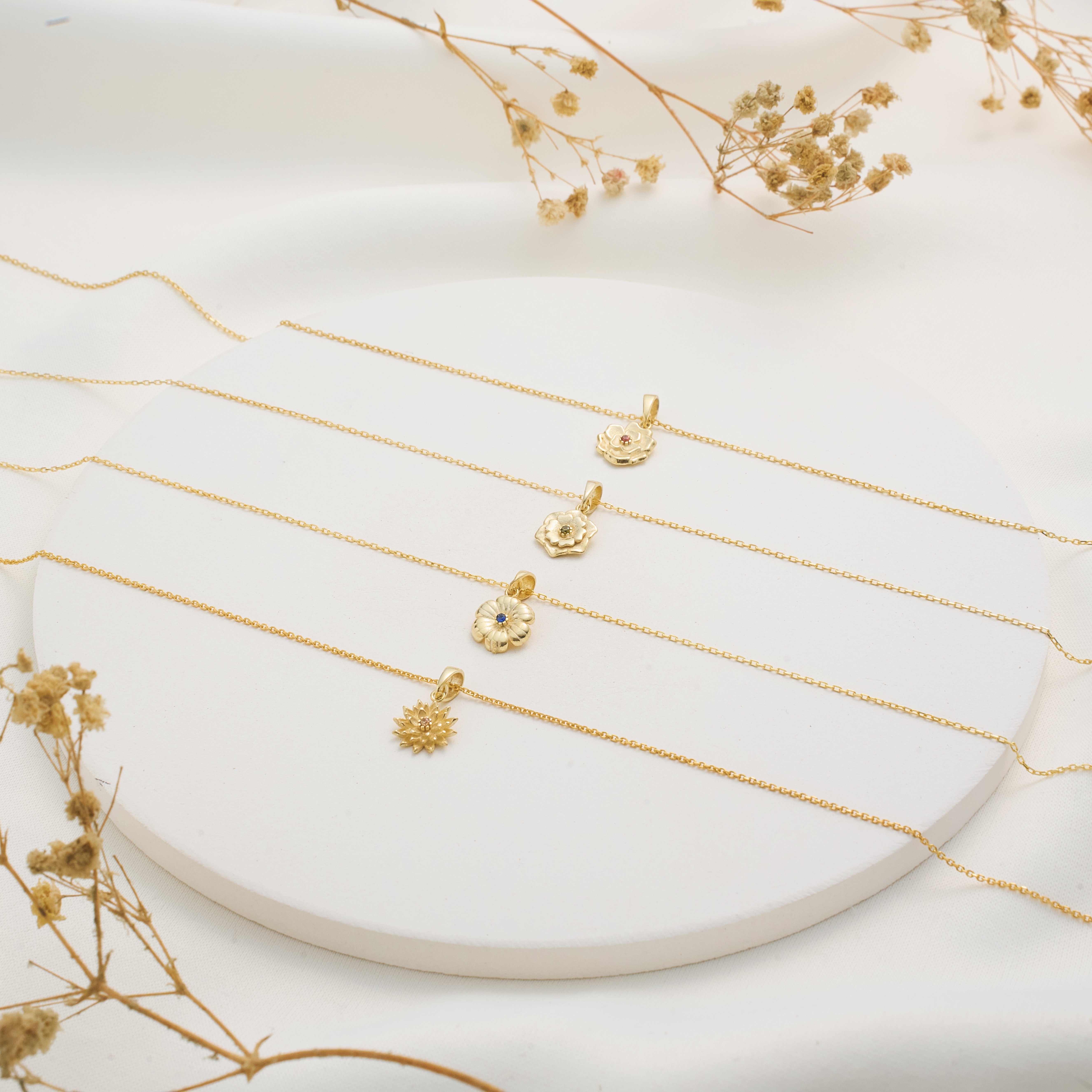 Doğum ayına özel çiçek detaylı kolye