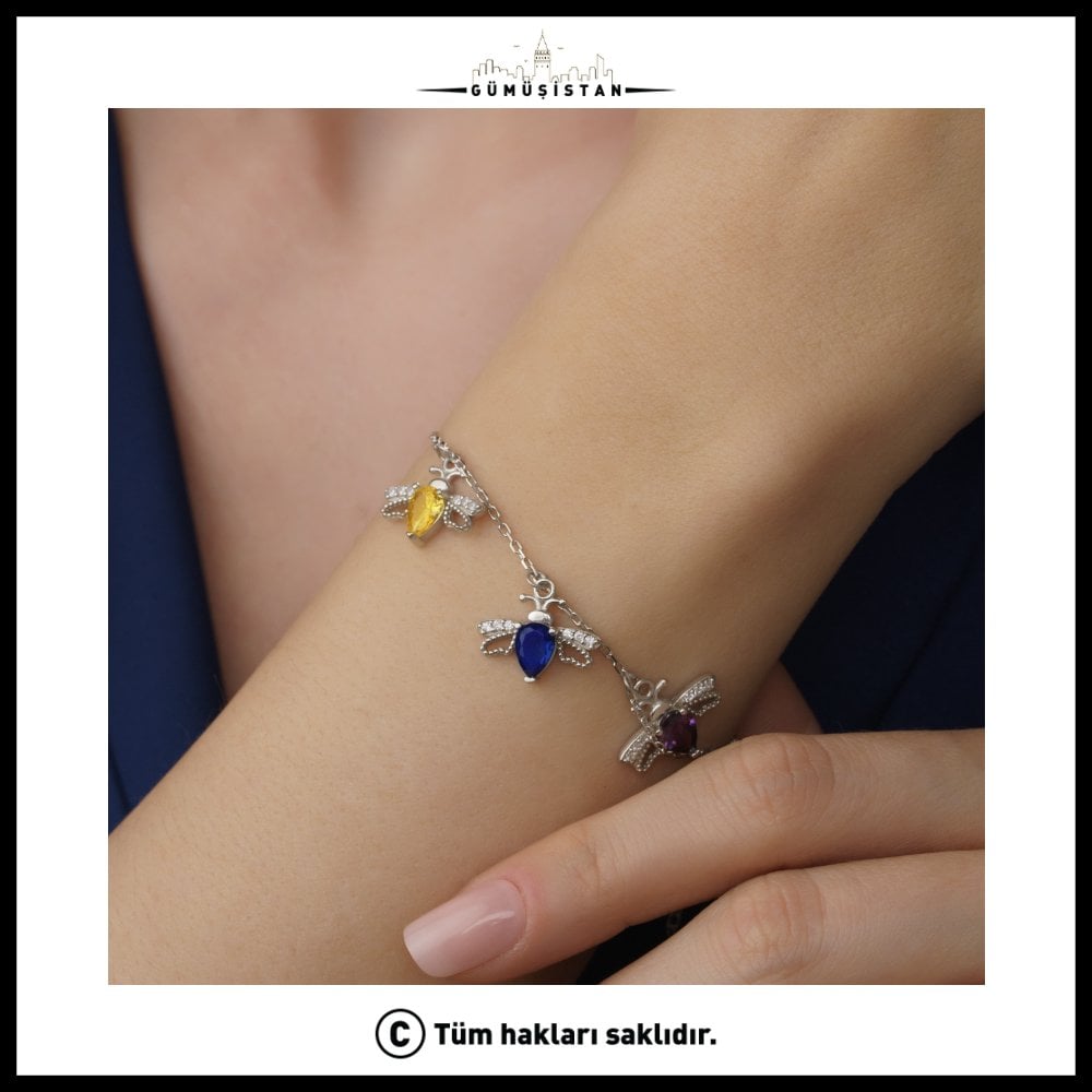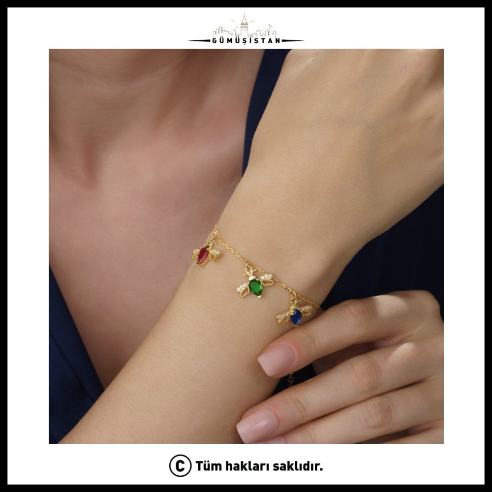 Bileklik üzerine isteğe bağlı olarak 1’den 5’e kadar arı kuşu figürü eklenebilir. Her bir kuş, seçtiğiniz doğum taşı renginde hazırlanır. Böylece çocuklarınızı, eşinizi, annenizi ya da hayatınızdaki değerli kişileri simgeleyen anlamlı bir takıya sahip olabilirsiniz. Her renk bir ayı ve bir anlamı temsil eder; tasarım tamamen size özel oluşturulur.