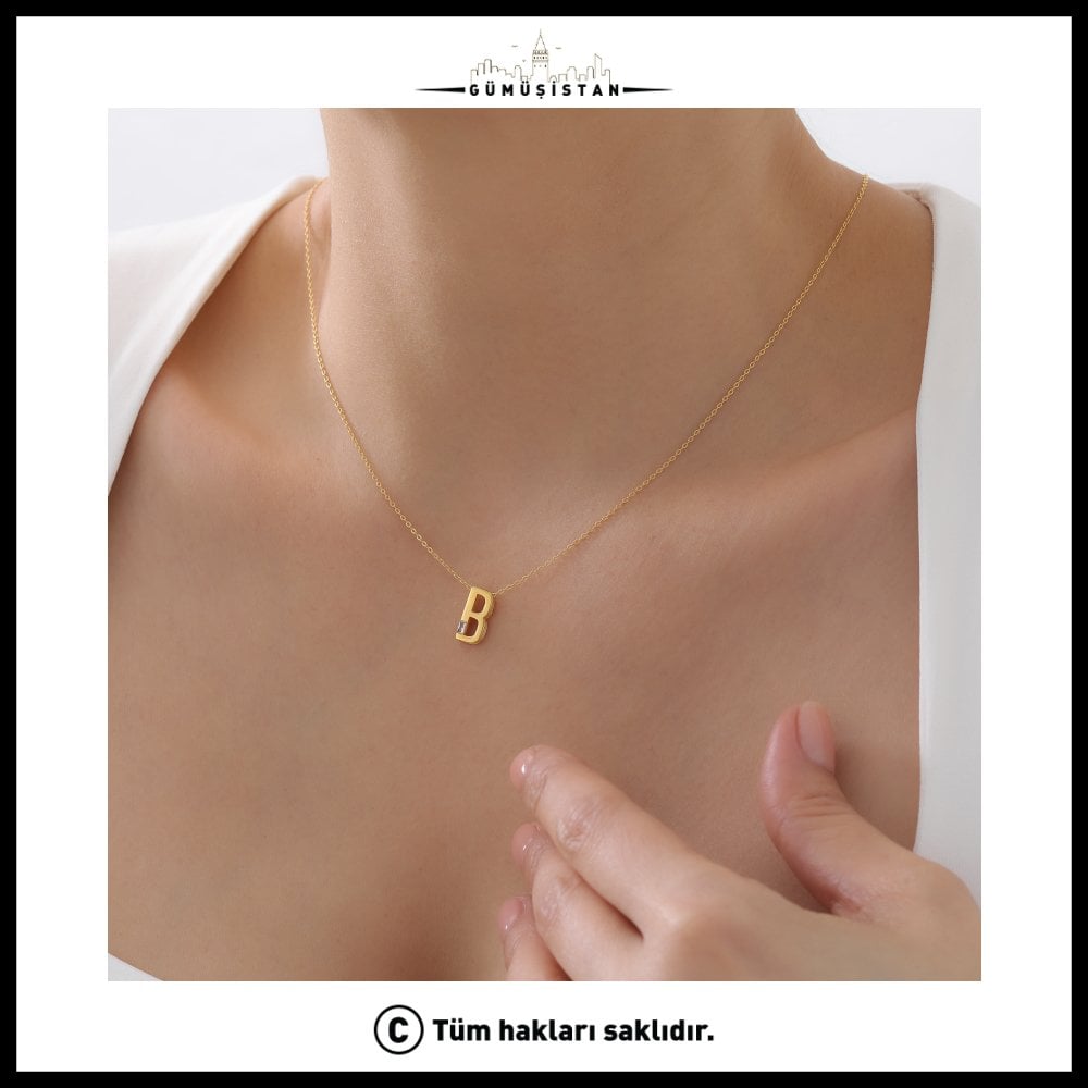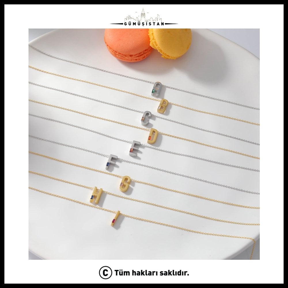 14 Ayar Altın Kaplama Kişiye Özel Doğum Taşlı Bujiteri Harf Kolye