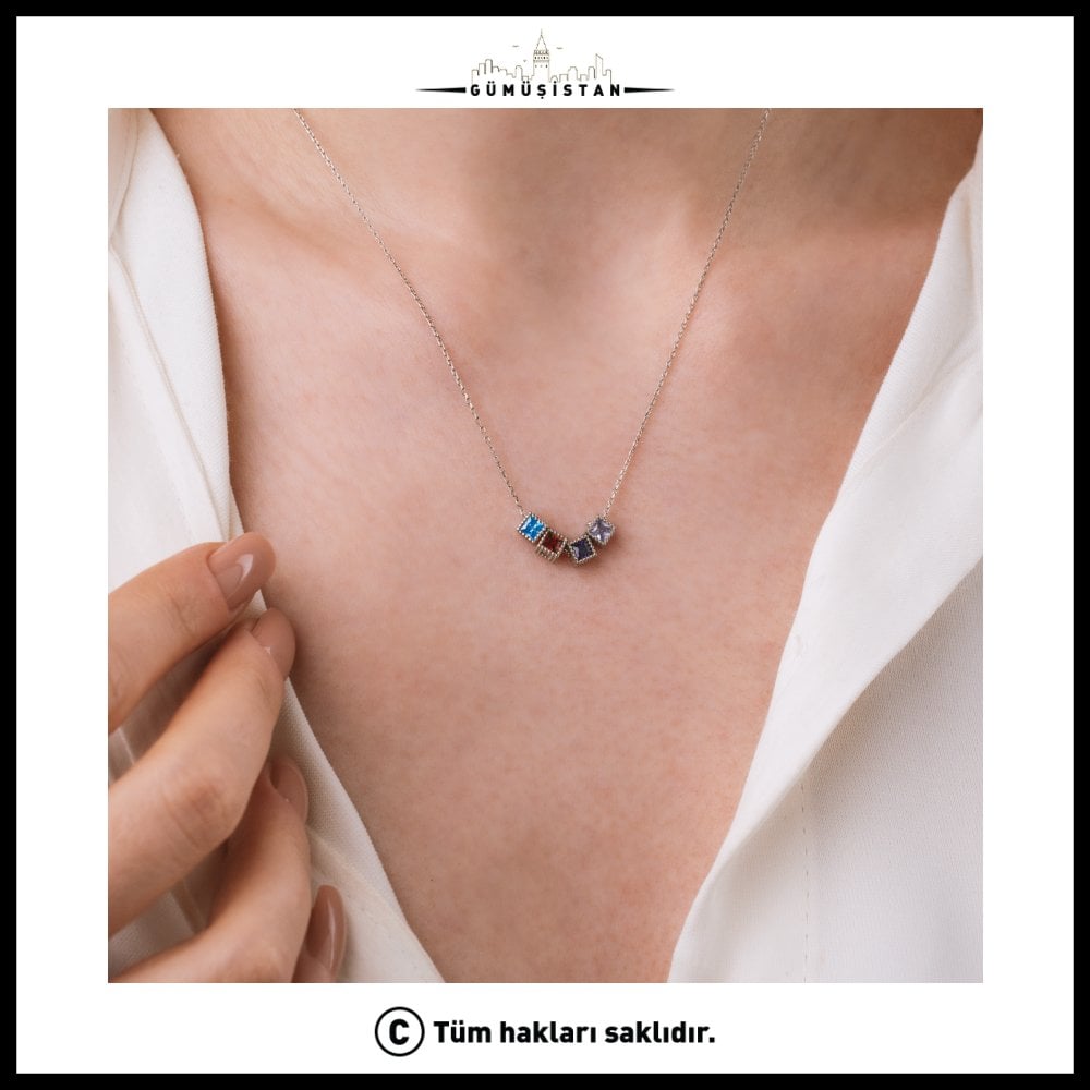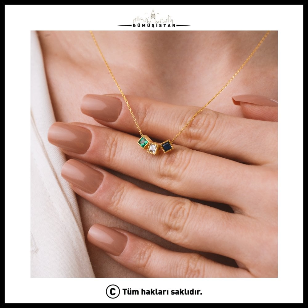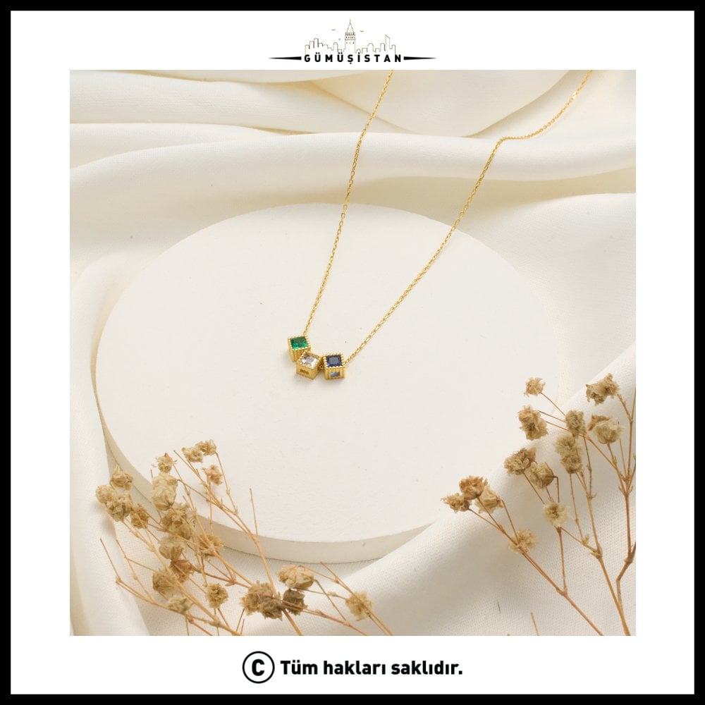 14 Ayar Altın Kaplama Kişiye Özel Çoklu Kare Doğum Taşlı Kolye Bujiteri, tamamen size özel olarak hazırlanan zarif ve anlam yüklü bir tasarımdır. Kare kesim doğum taşları, minimal altın kaplama zincir üzerinde modern ve şık bir duruş sergiler.