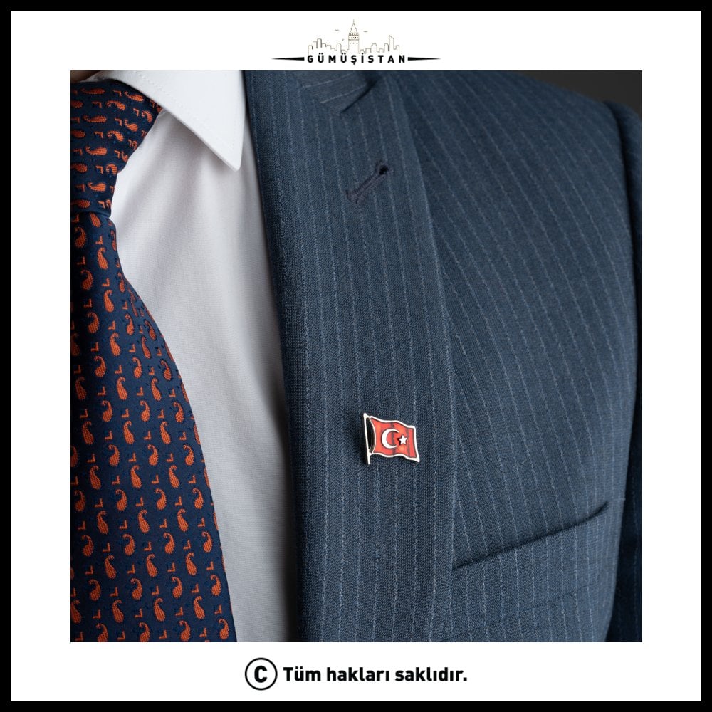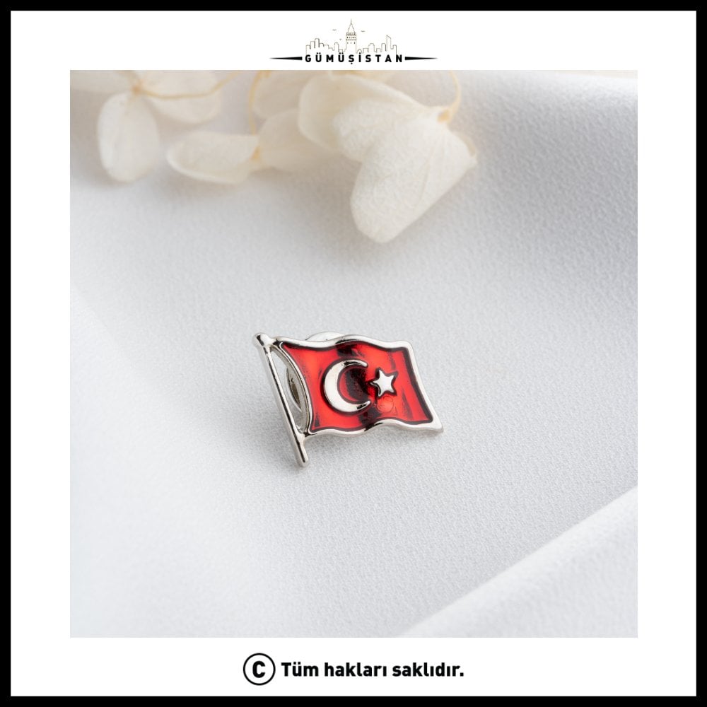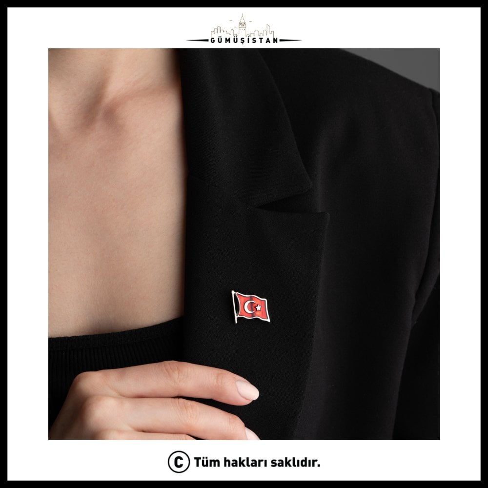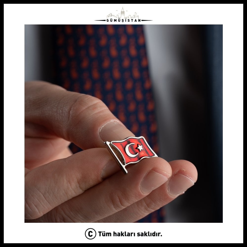 Türk bayrağı, Türkiye Cumhuriyeti'nin ulusal ve resmî bayrağı. Al renkli zemin üzerinde beyaz hilâl ve yıldız ile oluşmuştur. 14 ayar altın kaplama Türk bayrağı yaka rozeti oldukça özel bir takı parçasıdır. Milli gurur ve vatanseverlik duygularını ifade etmek veya özel etkinliklerde kullanılmak için üretilmiştir.