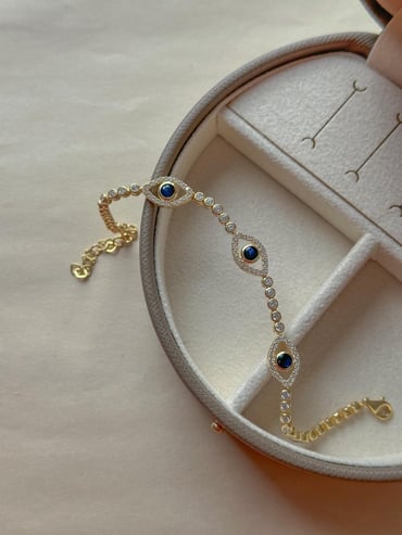 3lü Göz Figürlü Taşlı Bileklik - 925 Ayar Gümüş