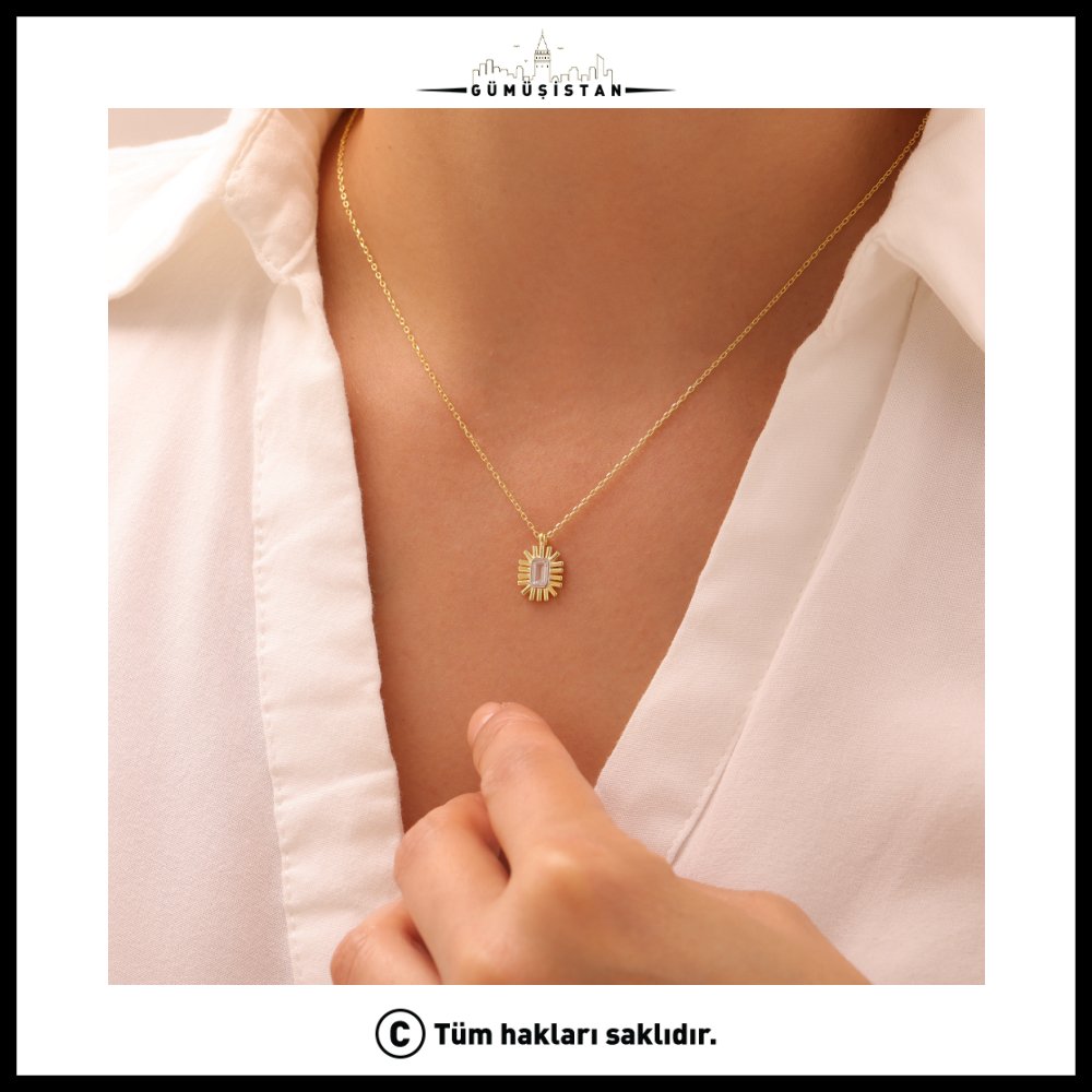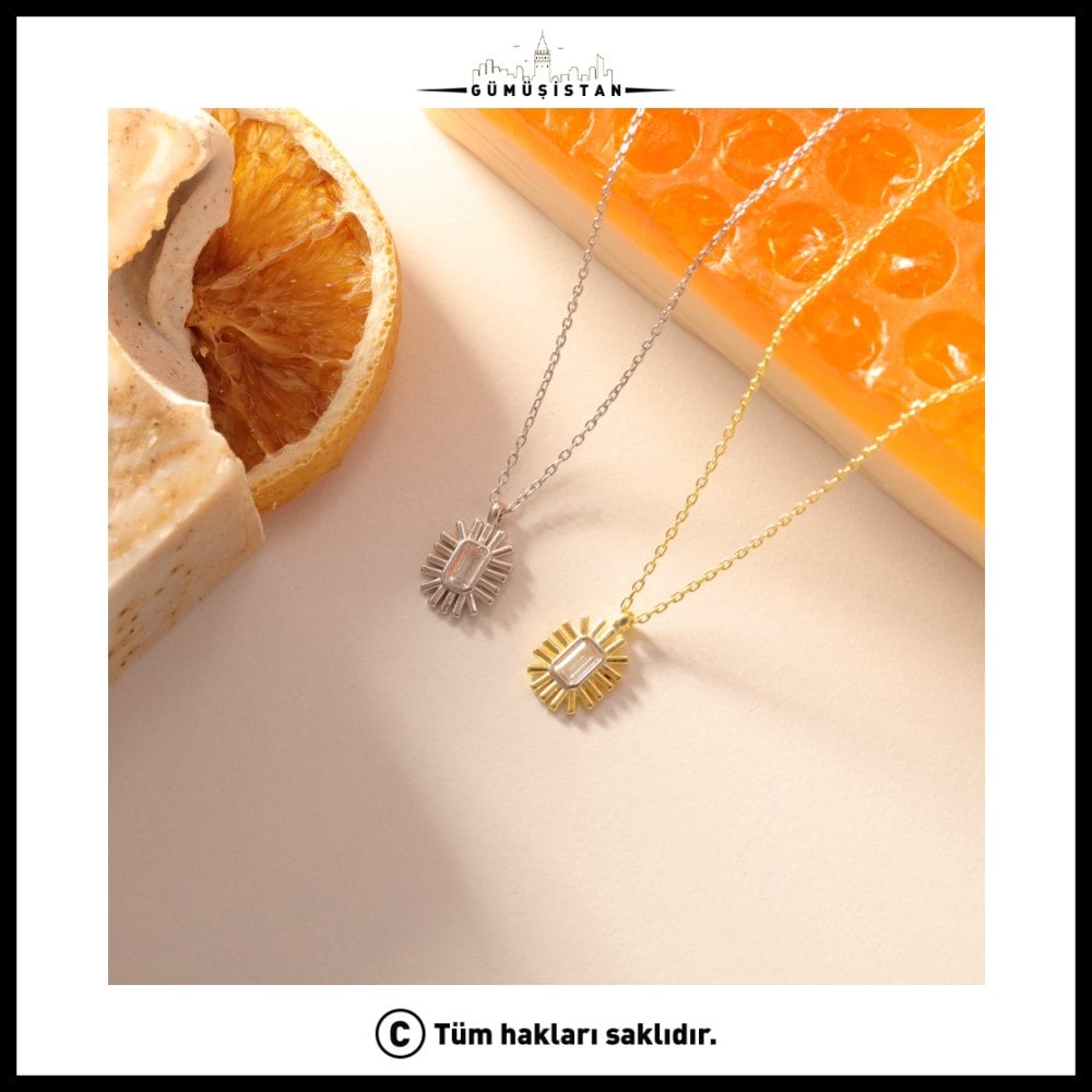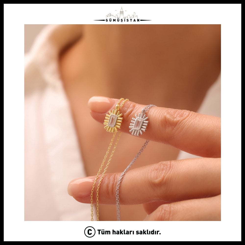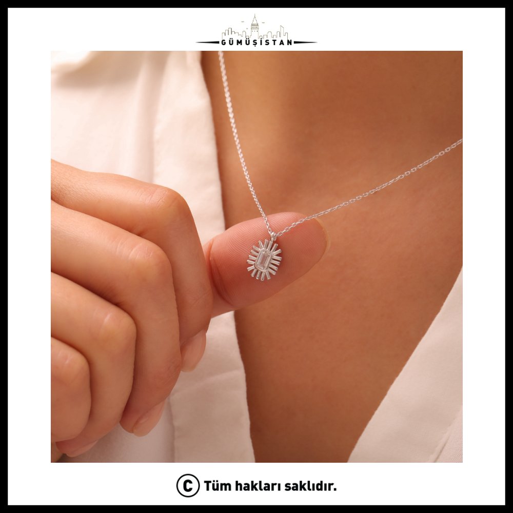 Modern şıklığın ve zamansız zarafetin buluştuğu bu özel kolye, kare formdaki baget taş detayıyla göz alıcı bir ışıltı sunar. 925 ayar gümüşten üretilen tasarım, minimal dokusuyla hem günlük kullanımda hem de özel davetlerde stilinizi tamamlar.
