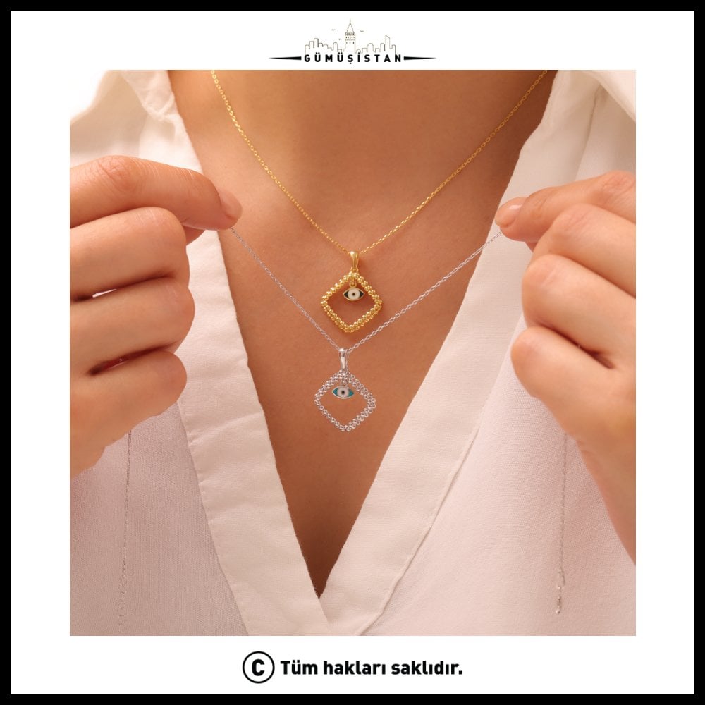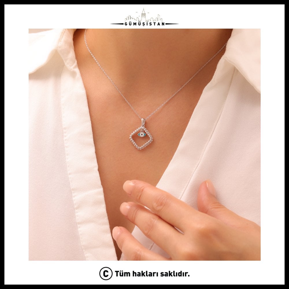 925 Ayar Çerçeveli Nazar Kolye