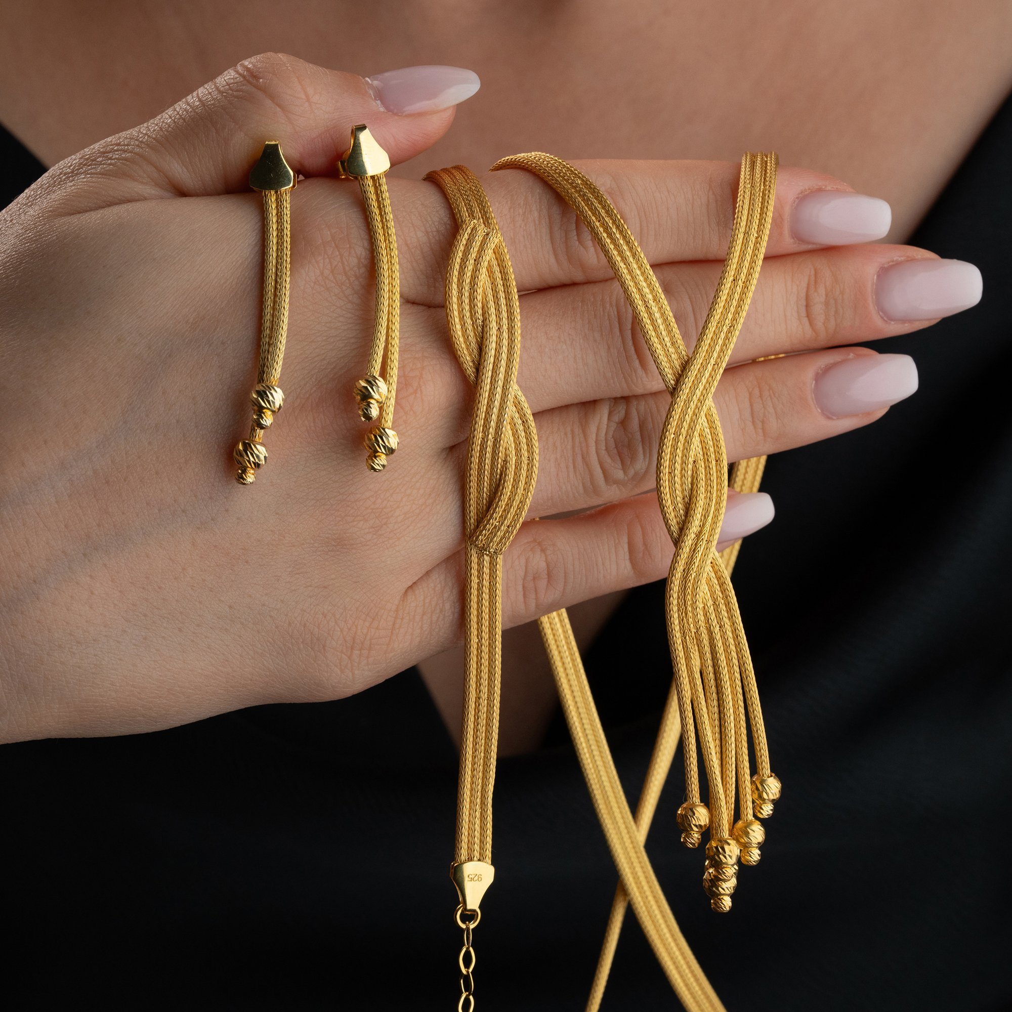 925 Ayar Gümüş Altın Kaplama El İşçiliği Örgü Dorika Set