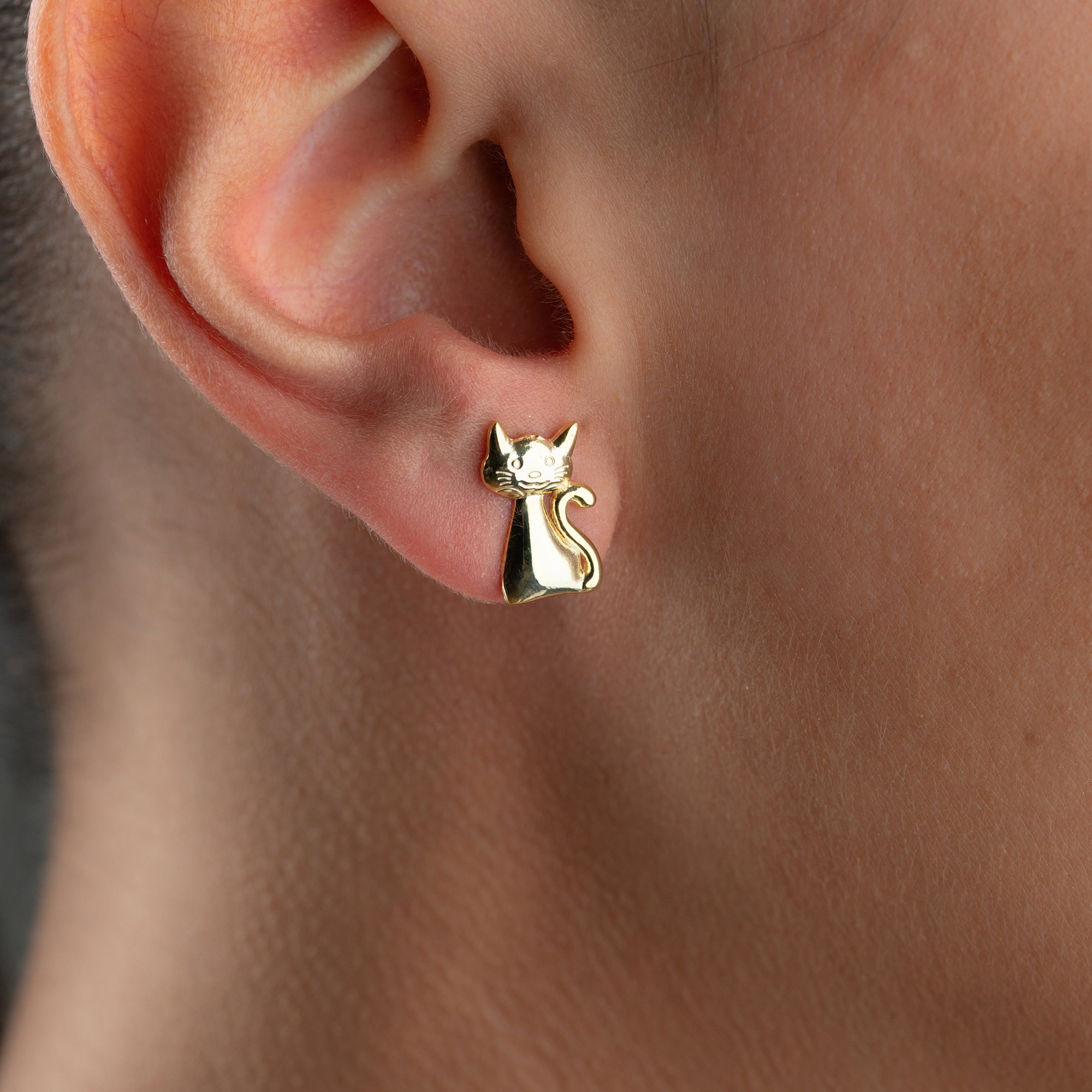 Zarafeti sevimli bir detayla taçlandırın. 925 ayar gümüş üzerine uygulanan yüksek kalitede altın kaplama ile tasarlanan bu küpeler, kedi dostlarımızın asaletini stilinize taşıyor.