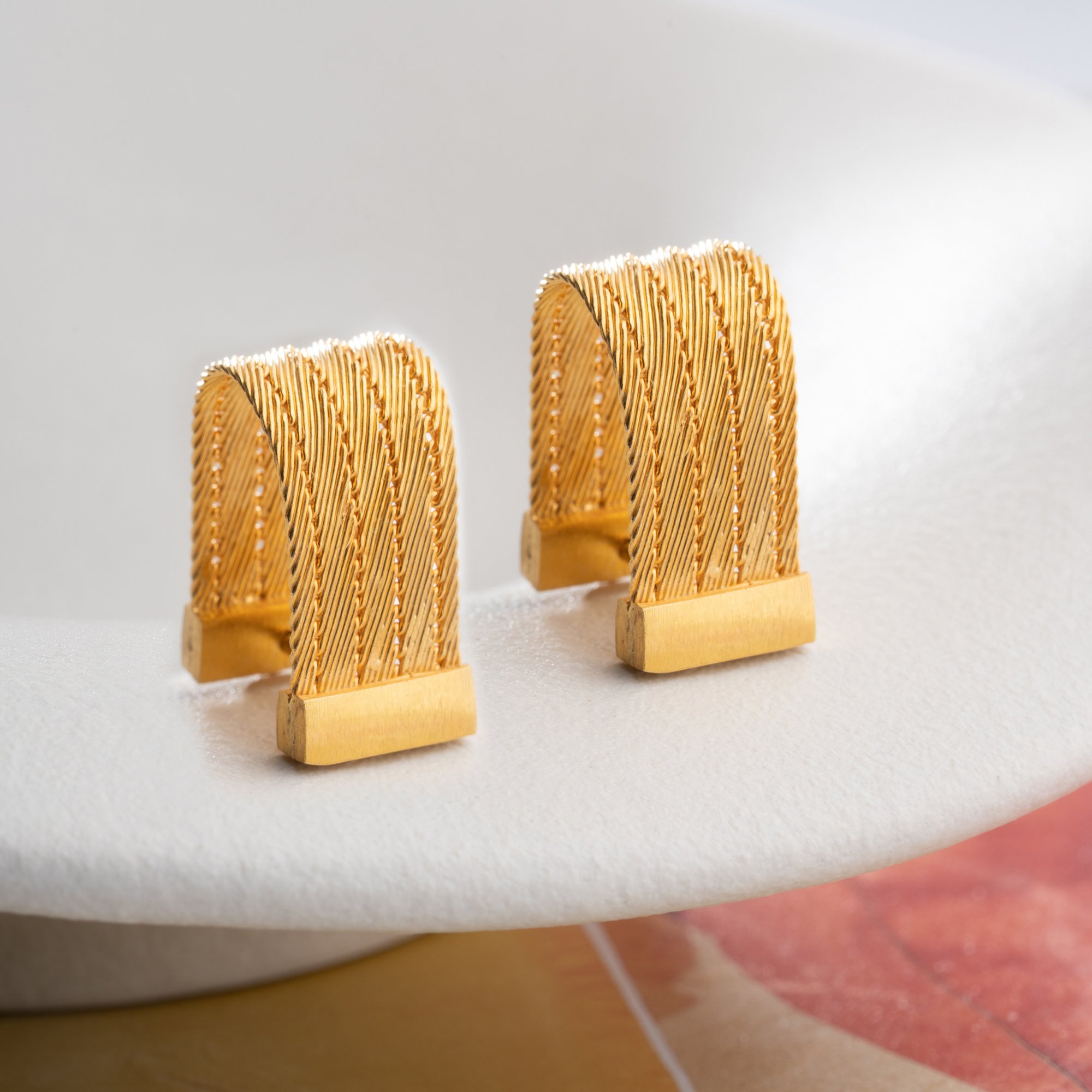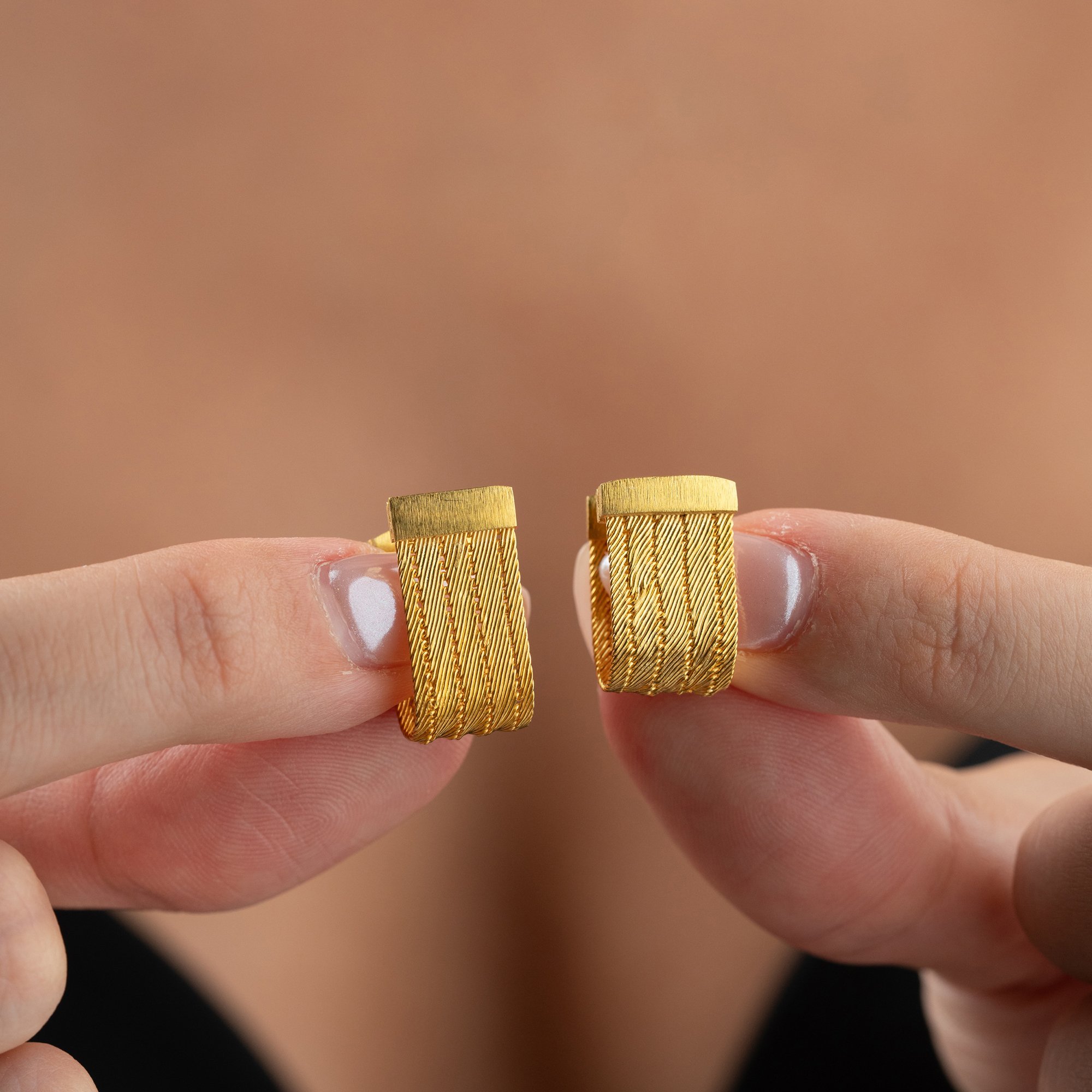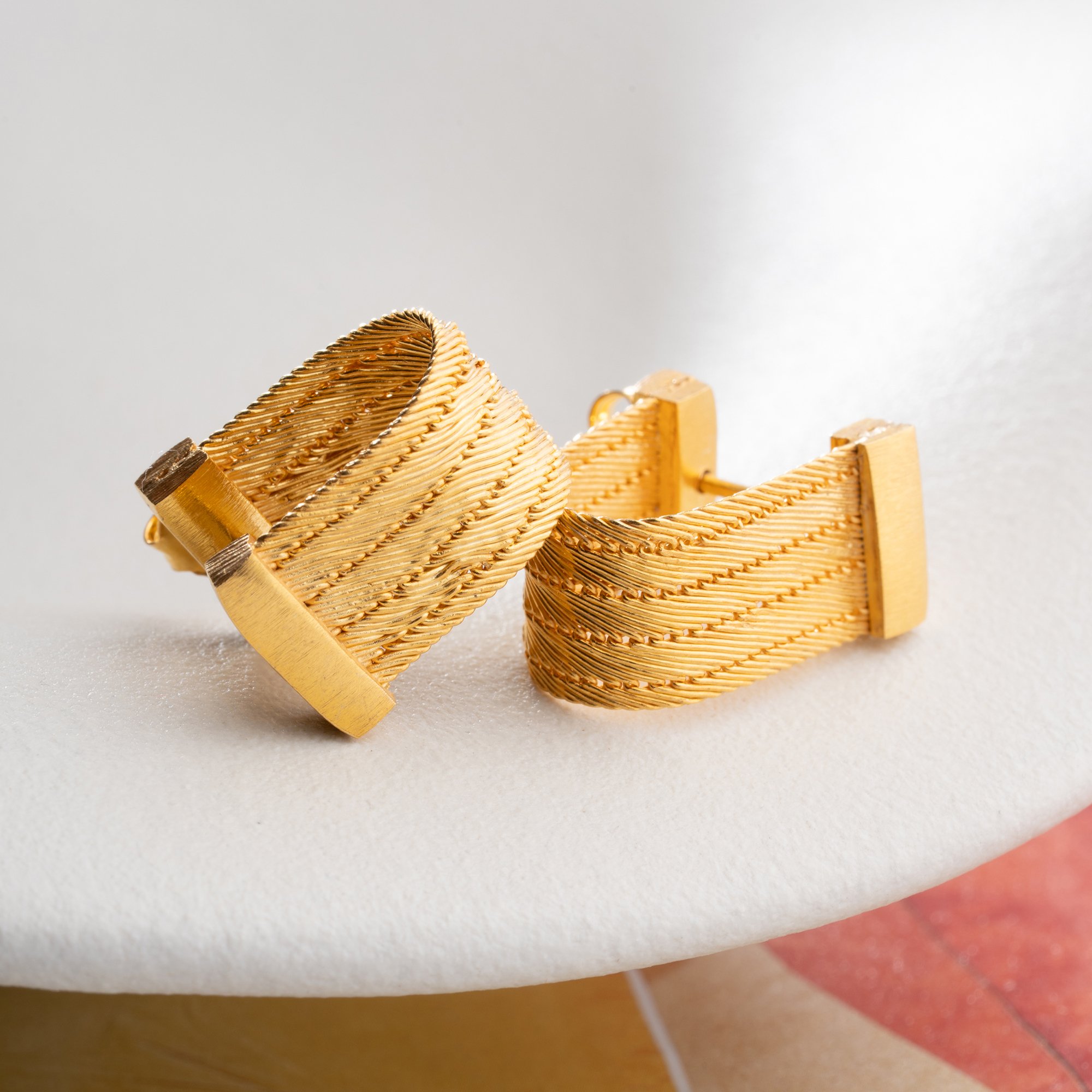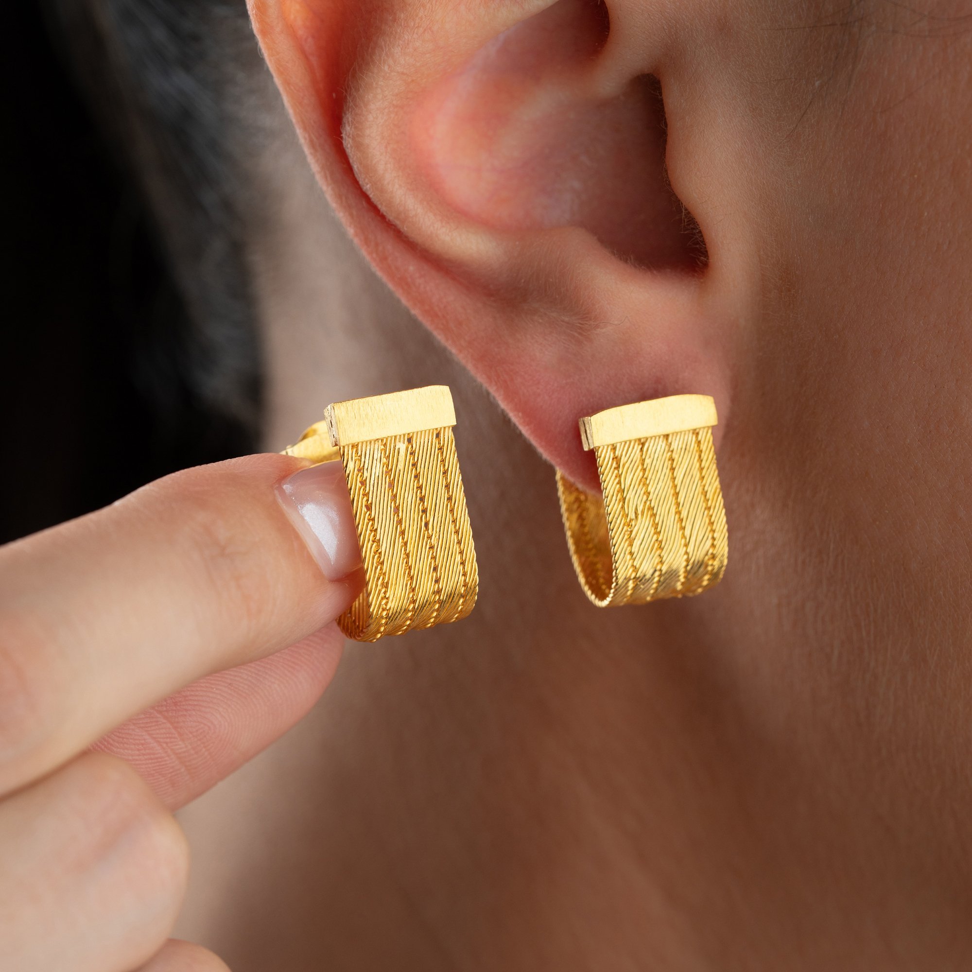 925 Ayar Gümüş Altın Kaplama Trabzon Hasırı Örgü Küpe