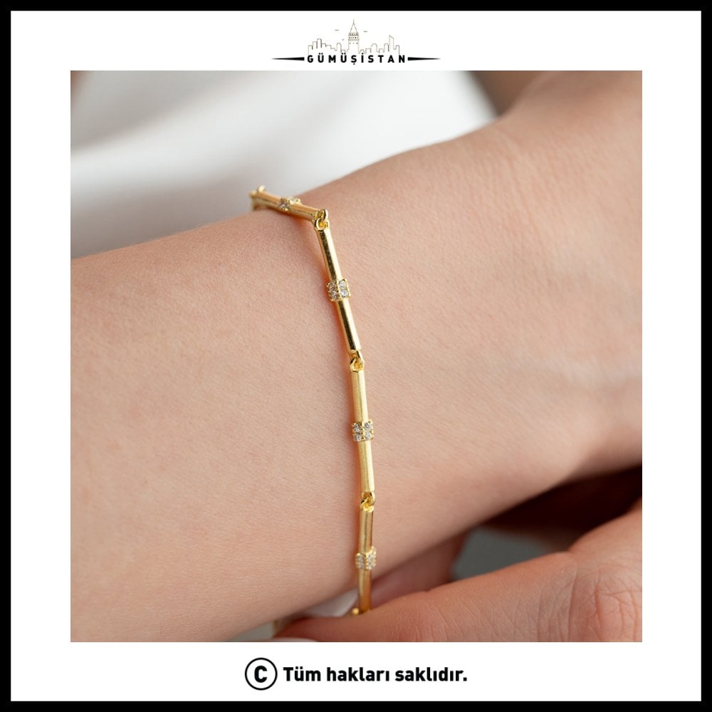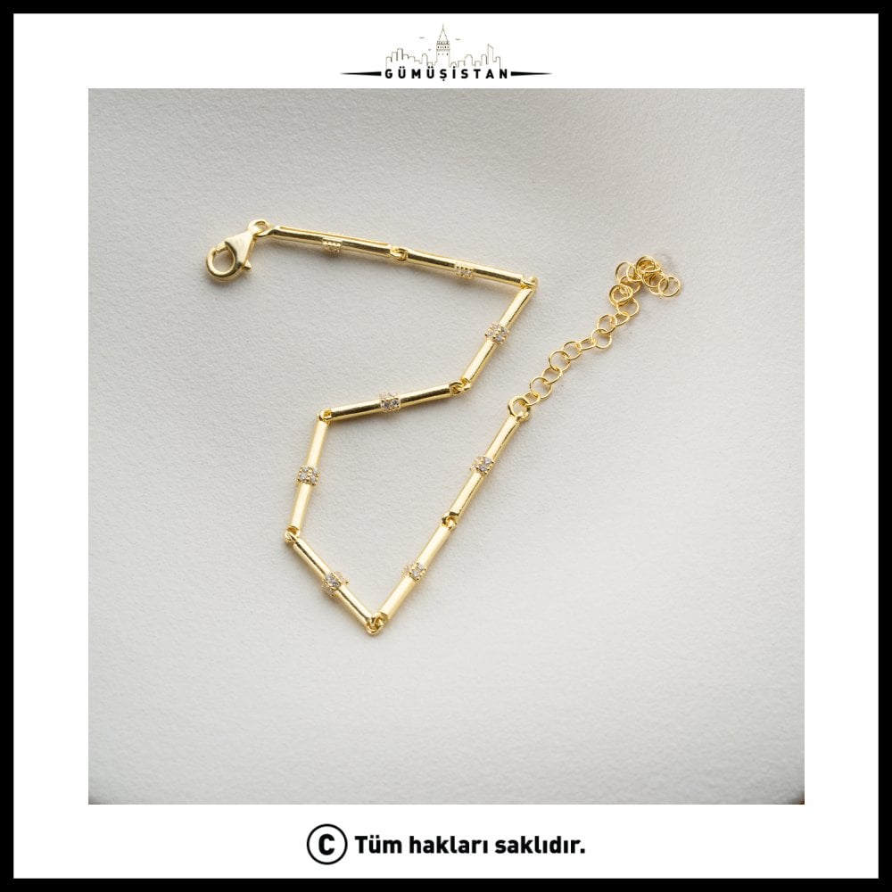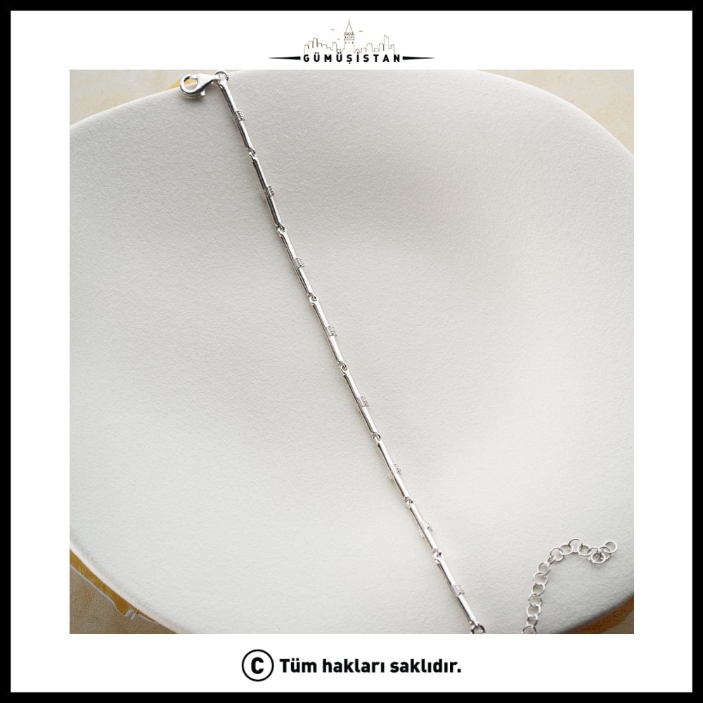 Modern çizgilerin zarafetle buluştuğu bu çubuk detaylı taşlı bileklik, minimal şıklığı sevenler için özel olarak tasarlandı. 925 ayar gümüşten üretilen bileklik, ince ve uzun çubuk formu üzerine yerleştirilen ışıltılı taş detaylarıyla sade ama dikkat çekici bir görünüm sunar.