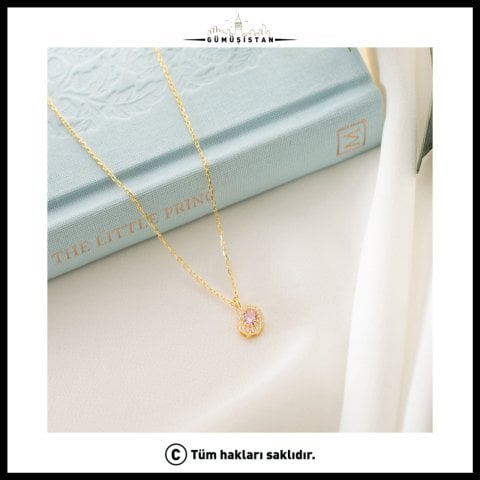 925 Ayar Gümüş Ekim Ayı Doğum Taşı ( Pink Tourmaline ) Kolye