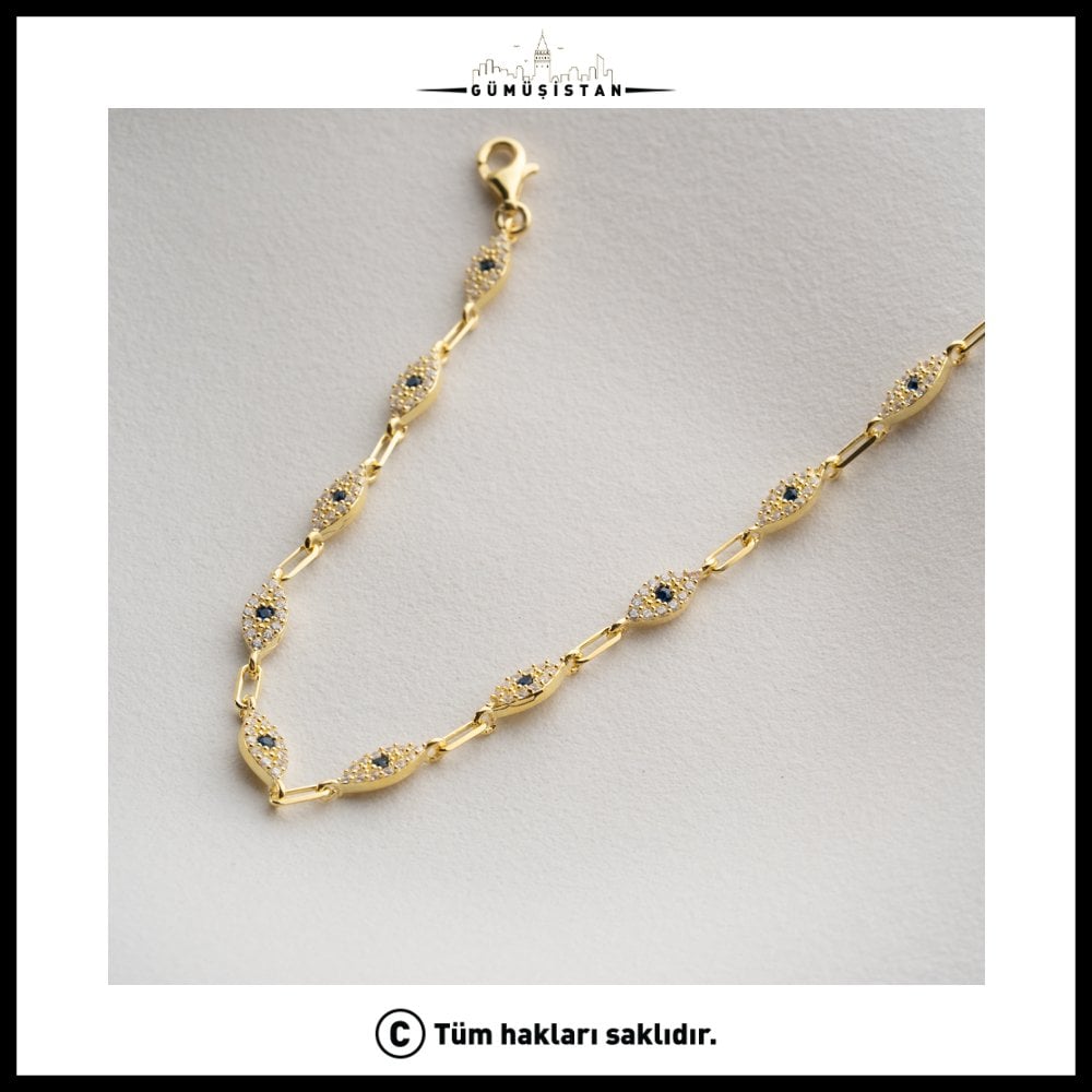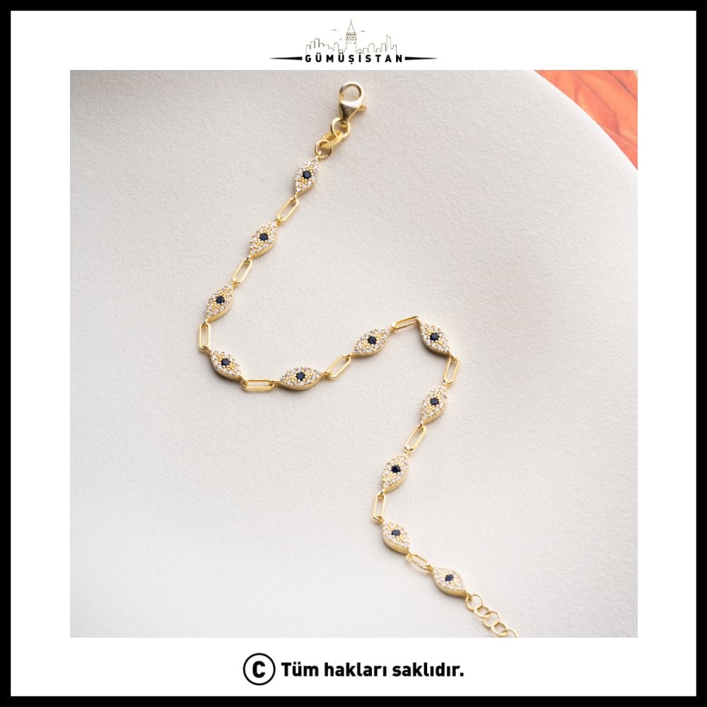 Geleneksel nazar sembolünün modern ve zarif yorumu… 925 ayar gümüşten üretilen göz nazarlı bileklik, hem estetik görünümü hem de taşıdığı anlamla günlük stilinin vazgeçilmez parçalarından biri olmaya aday. Kötü enerjilere karşı koruyucu olduğuna inanılan göz figürü, yüzyıllardır şans ve iyi niyetin simgesi olarak kullanılır; bu özel tasarımda ise minimal bir şıklıkla yeniden hayat bulur.