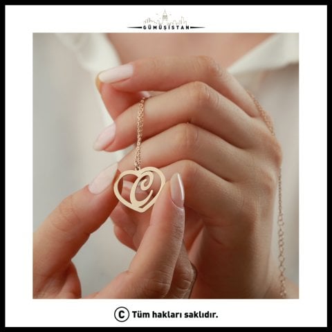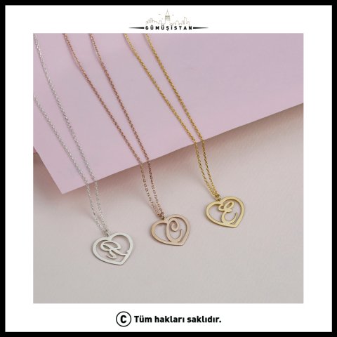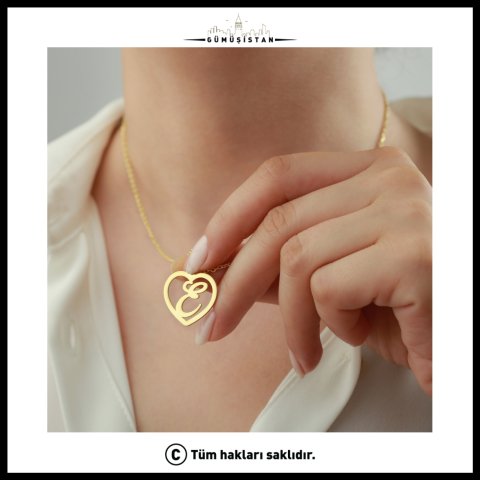 925 Ayar Gümüş Harf ve Kalp Detaylı Kolye
