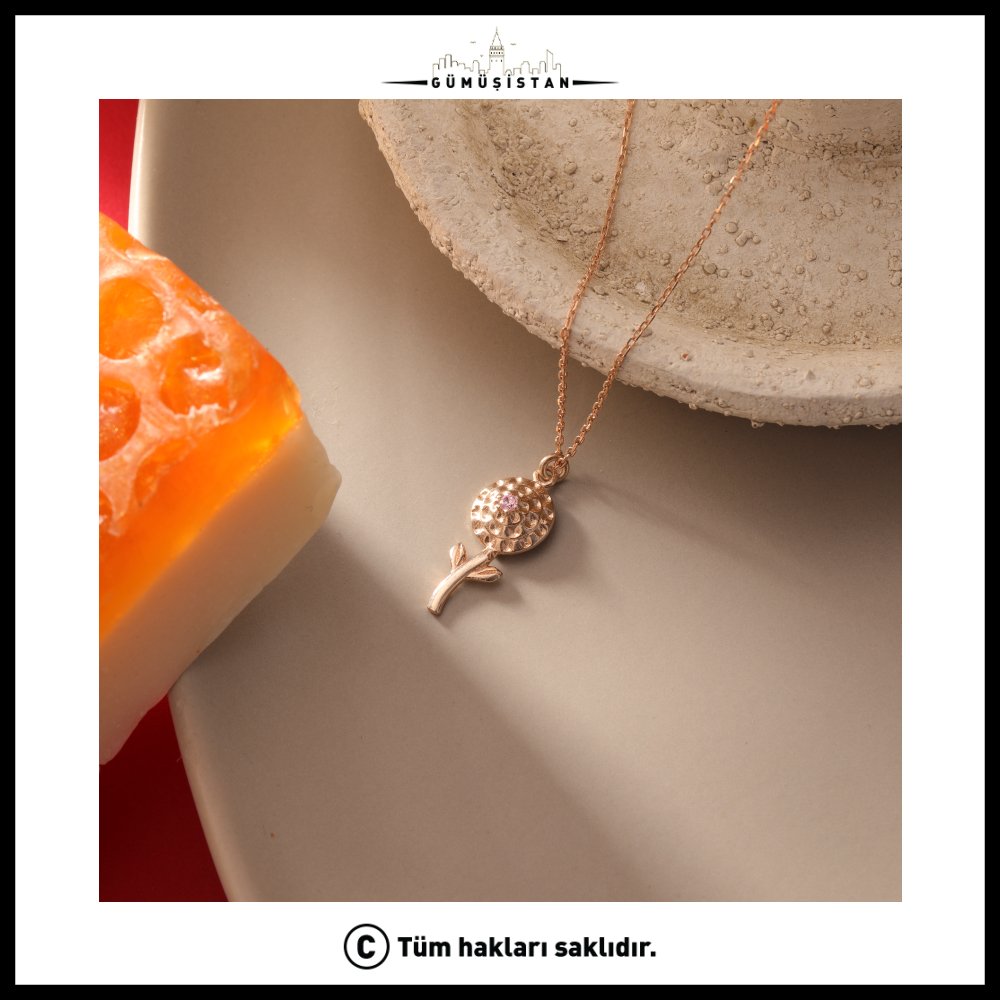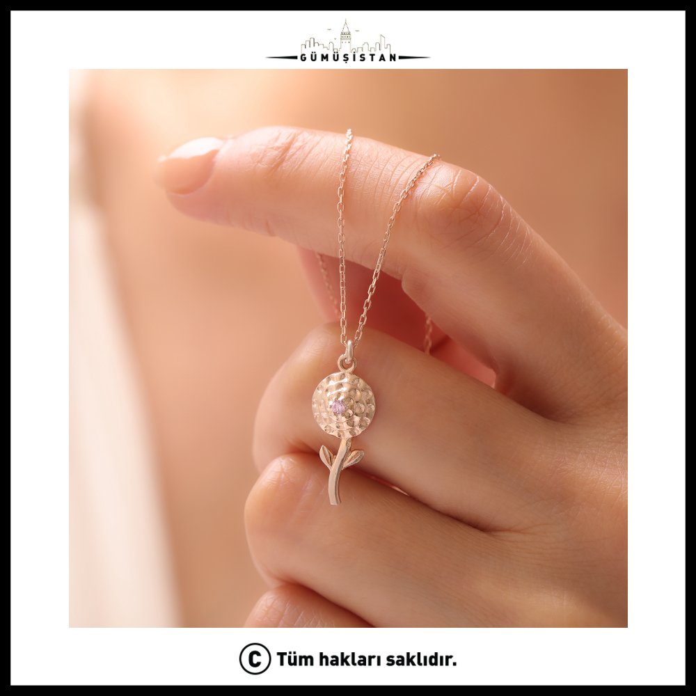 Zarif ve etkileyici kadife çiçeği motifi, 925 ayar saf gümüşle buluşuyor. Üzerinde Ekim ayının doğum taşı olan turmalin ya da opalin taşlarıyla süslenen bu özel kolye, güzellik ve koruma anlamlarını taşıyor.