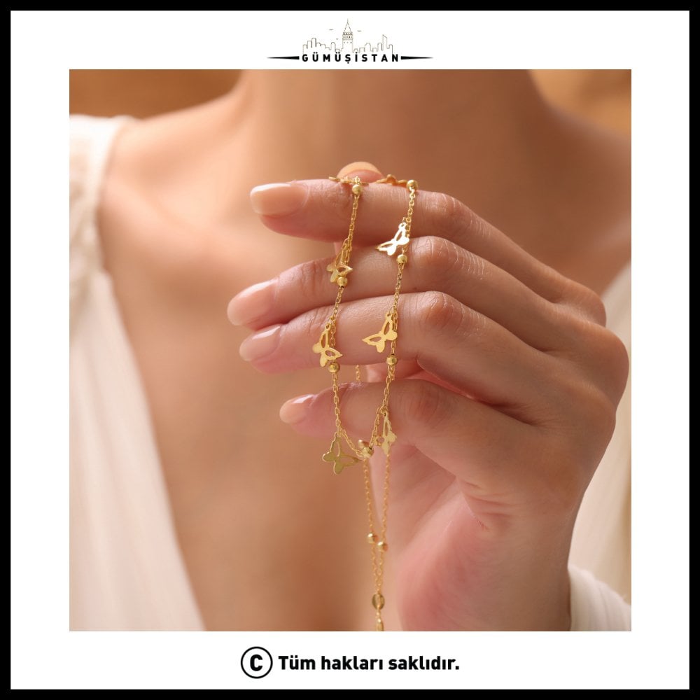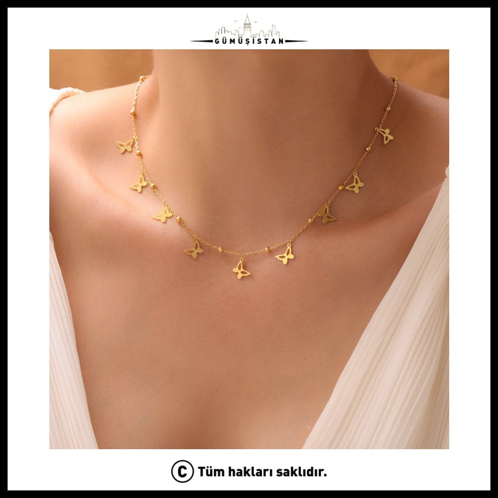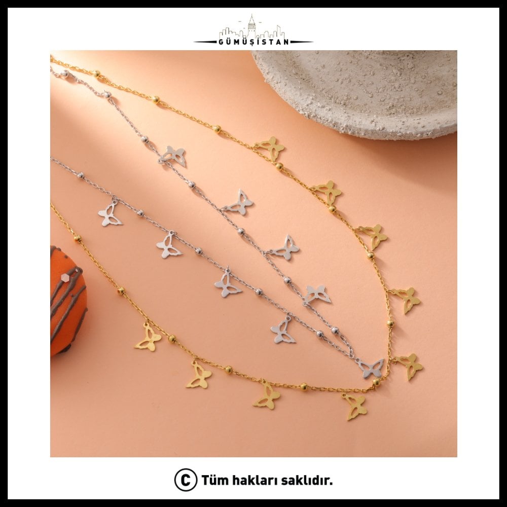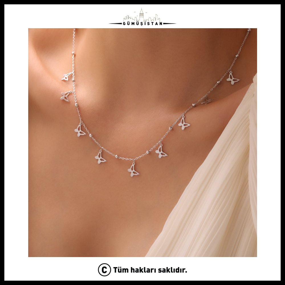 925 Ayar Gümüş Kelebekli Top Zincir Salaş Kolye