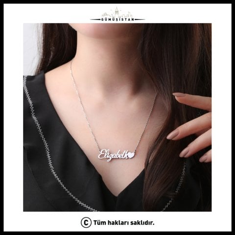 925 Ayar Gümüş Kişiye Özel İsimli Kalpli Kolye