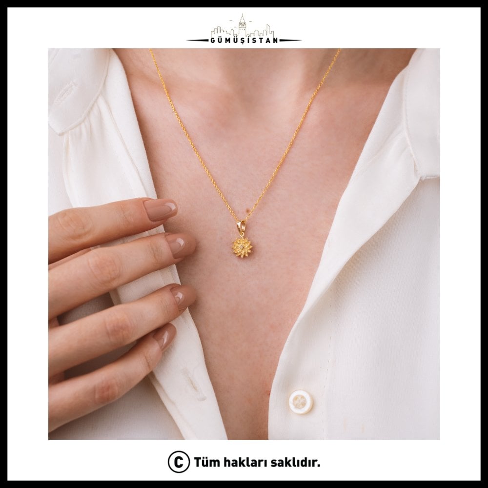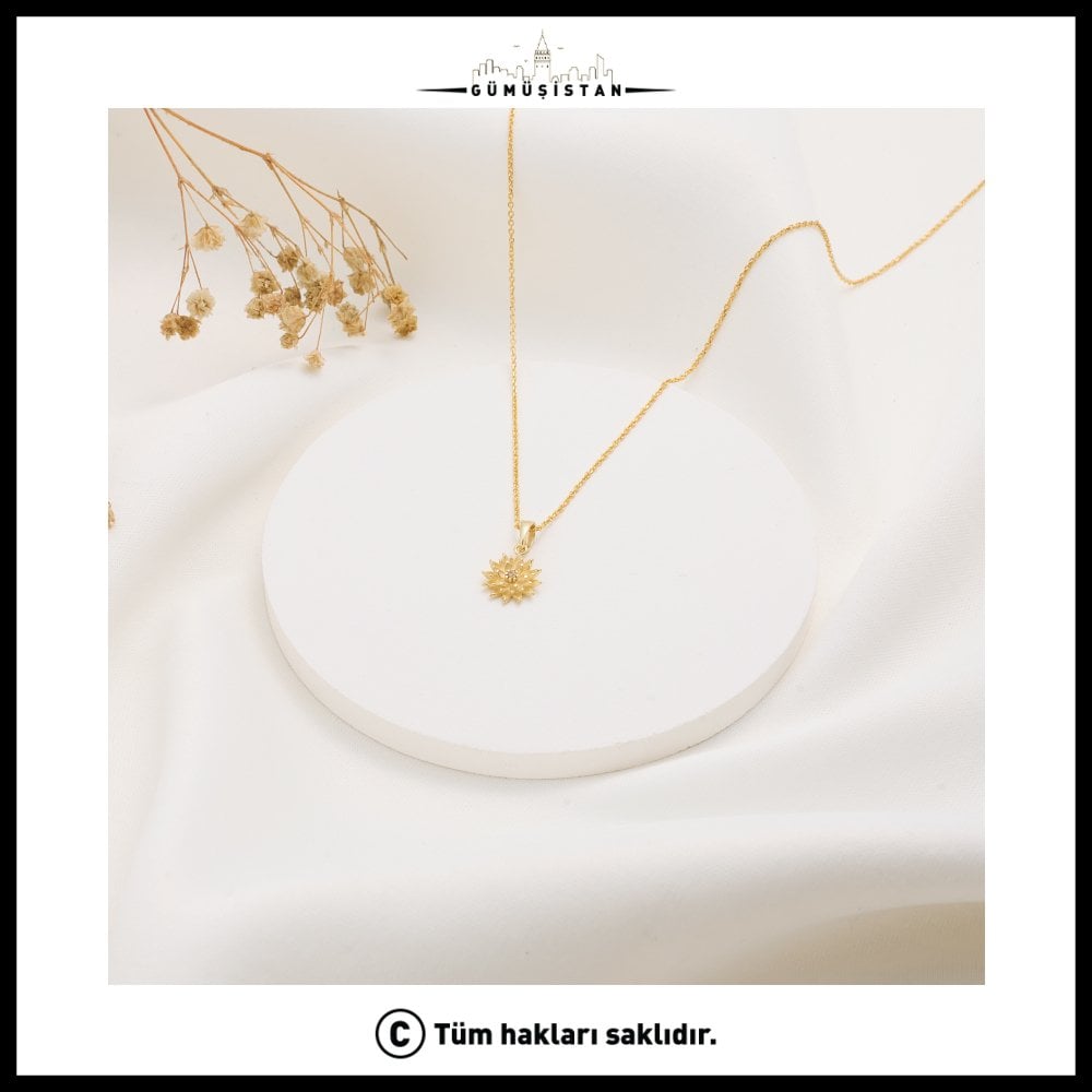 925 Ayar Gümüş Krizantem Çiçeği Kasım Ayı Minimal Doğum Taşı Kolyesi