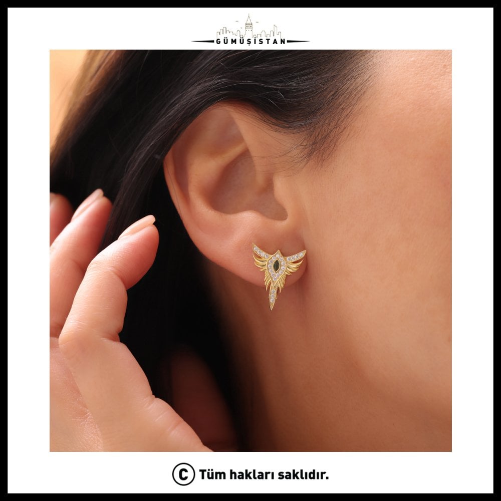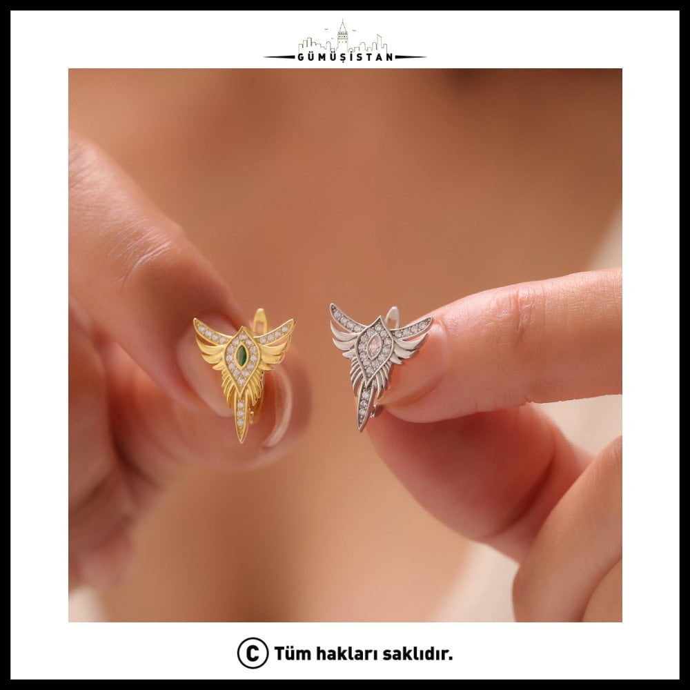 Kuş tüyünün hafifliği ve kılıcın gücü… Bu küpe, cesareti, özgürlüğü ve kararlılığı bir araya getirir. Zarif gümüş kılıcın üzerine eklenen kuş tüyü detayı, gücün merhametle ve özgür ruhla birleşmesini simgeler.
