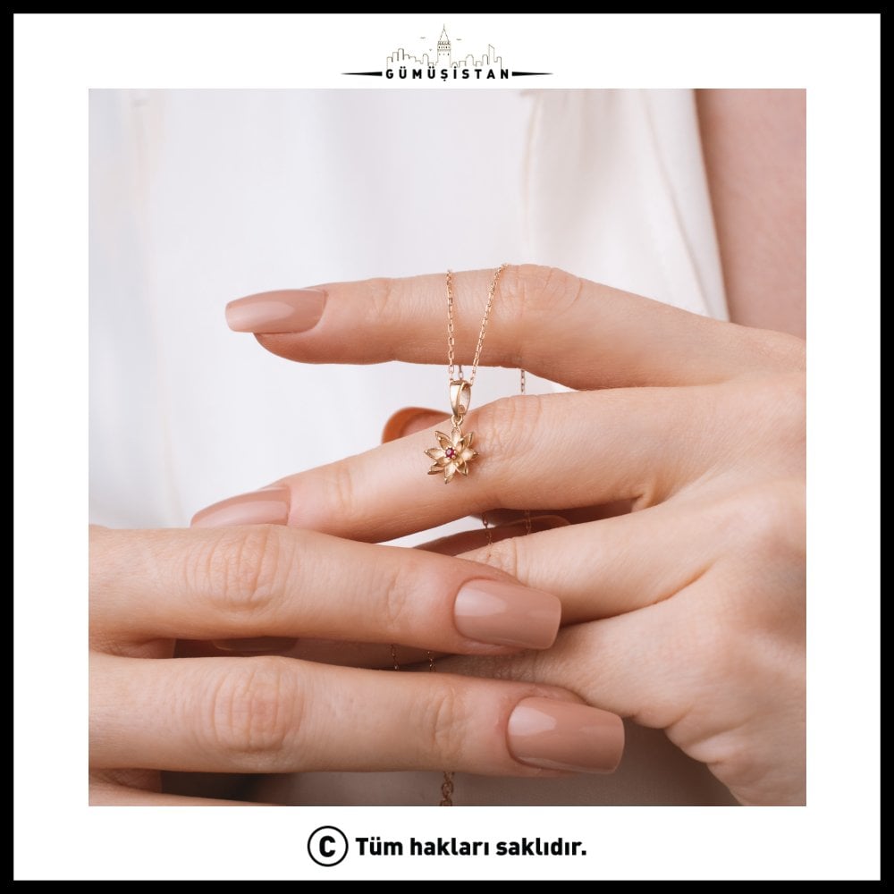 Temmuz ayının doğum taşı kolyesi genellikle yakut (ruby) ile tasarlanır