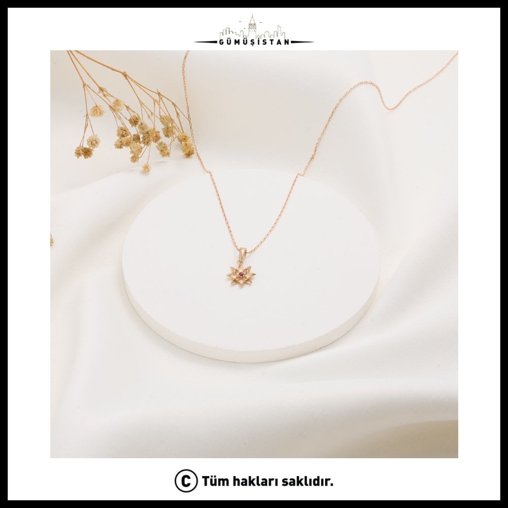 "925 Ayar Gümüş Larkspur & Yakut Doğum Taşı Kolyesi"