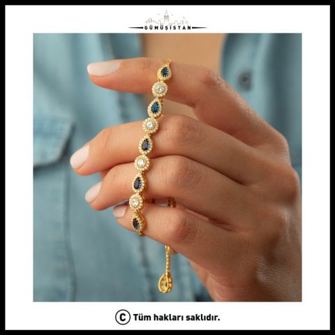 925 Ayar Gümüş Mavi Taşlı Asansörlü Bileklik