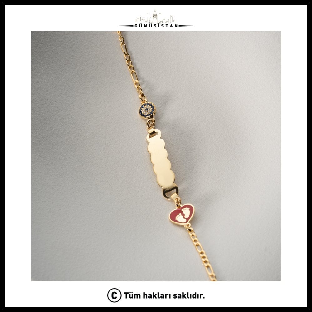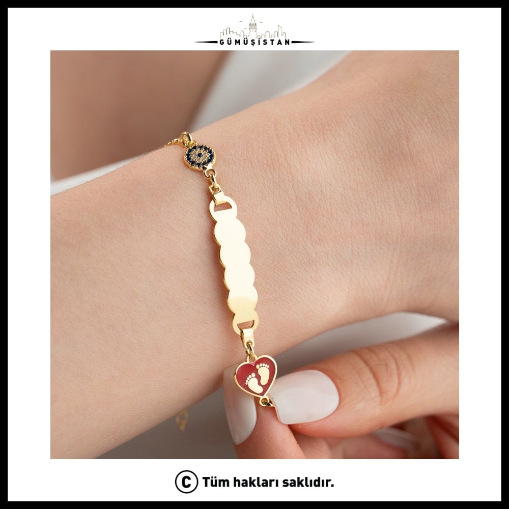 Sevginin en masum izlerini taşıyan bu özel bileklik, minik ayak izi detayıyla tasarlanmıştır. 925 ayar gümüş yapısı ve zarif taş dokunuşlarıyla şıklığı ön plana çıkarırken, kişiselleştirilebilir plaka alanıyla anlamlı bir hediye seçeneği sunar. 14+5 cm uzatma zinciri sayesinde bileğe rahatça uyum sağlar, hafif ve konforlu yapısıyla günlük kullanım için idealdir.