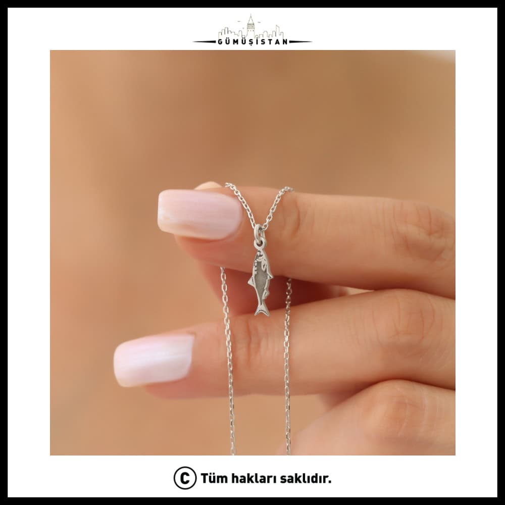 Mitolojik olarak verimlilik ve bereketi simgeleyen balık figürü denizciler için de şans ve mutluluğu temsil ediyor. Minimal tasarıma sahip gümüş balık kolye sevdiklerinize özel bir hediye olabilir.