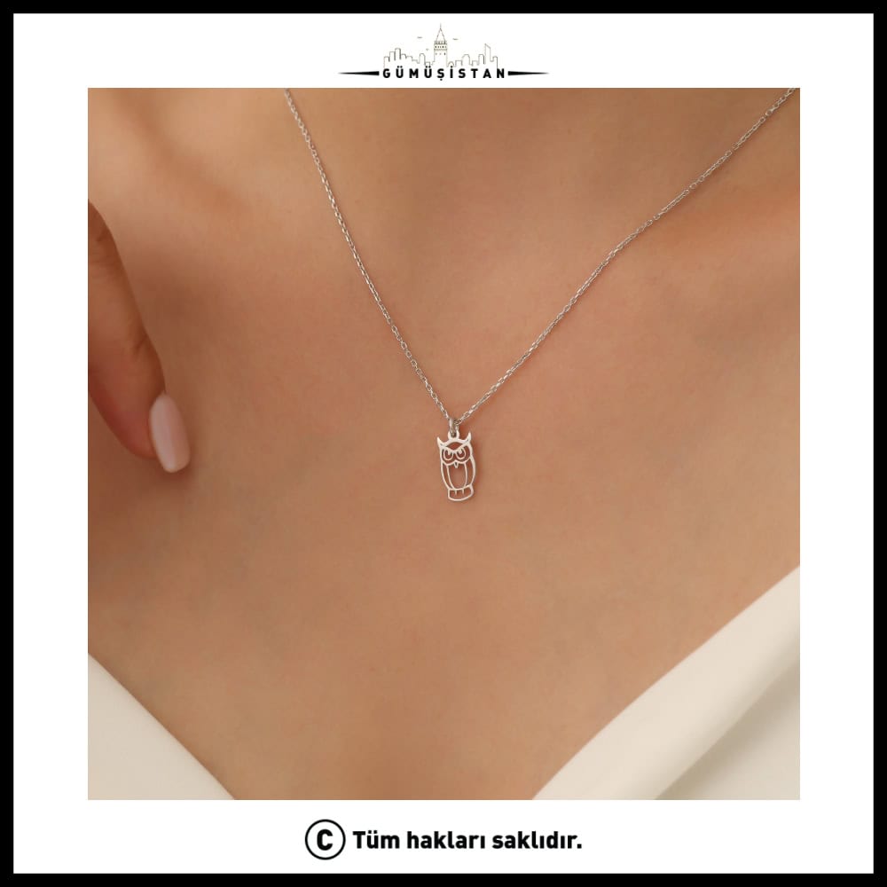 Bilgelik ve zekanın sembolü olan baykuş figürü Gümüşistan tasarımı ile kolye olarak üretildi. Mitolojik olarak farklı anlamlar taşıyan bu sembol savaş zamanlarında zaferi ve başarıyı simgeliyor. Minimal tasarıma sahip gümüş baykuş kolye sevdiklerinize özel bir hediye olabilir.