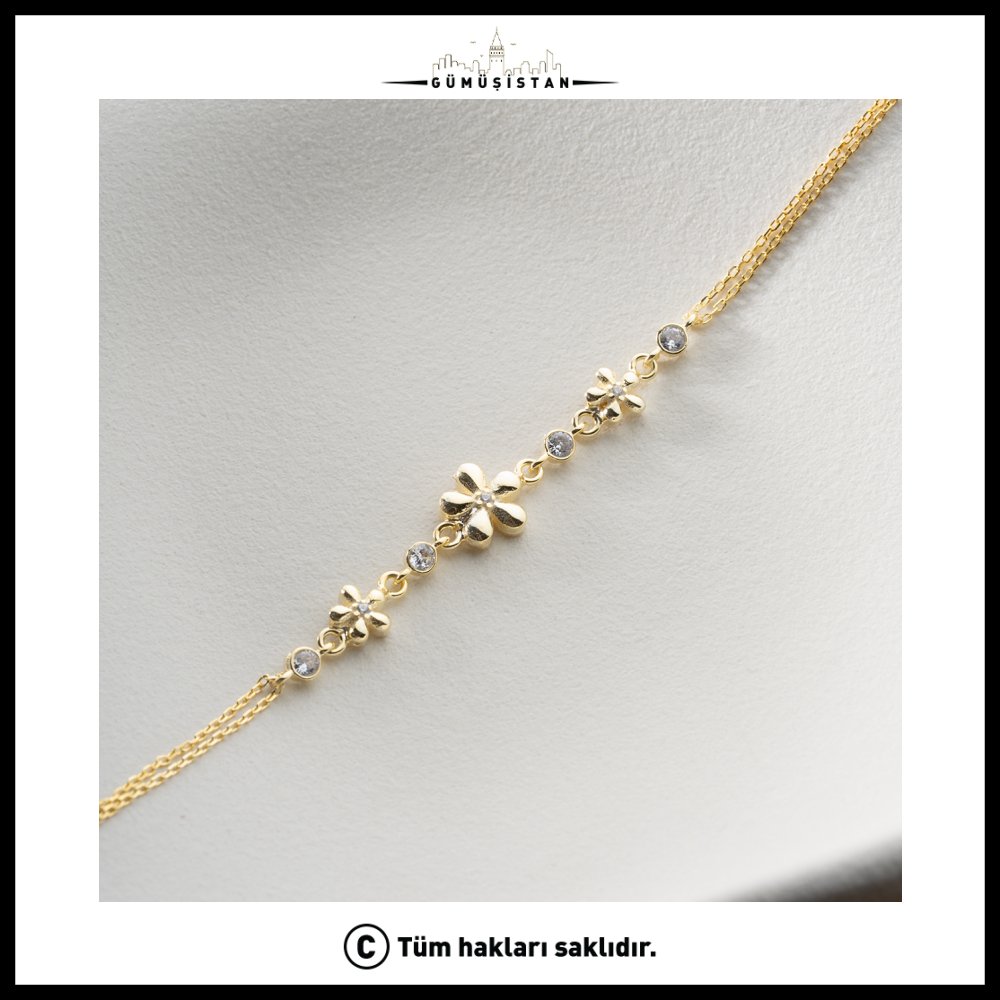 Çiçeklerin sembolü olan tazelik, güzellik ve yenilenme hissi bu bileklikte modern bir yorumla birleşir. Günlük kullanımda sade bir şıklık katmak için ideal olduğu gibi, özel günlerde de zarif kombinlerinin tamamlayıcısı olarak öne çıkar.