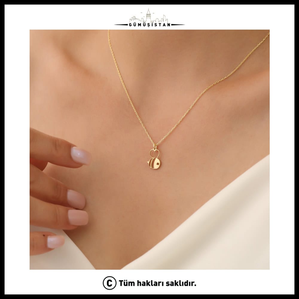 Tarih boyunca arılar kutsal sayılmış, arıların kovanları ve çalışma şekilleri Kutsal kitaplarda Tanrı'nın bir mucizesi olarak nitelendirilmiştir. Arı, mitolojide üremeyi, bereketi, bolluğu ve ölümsüzlüğü simgeler. Bu güzel anlamları barındıran ve detaylardan uzak basit tasarımı ile eşsiz bir duruşa sahip olan sevimli arı figürlü minimal tasarımlı kolye zarif ve etkileyici bir gümüş takıdır. Minimal arı kolye kendiniz, çocuğunuz, anneniz veya arkadaşlarınız için güzel bir hediye seçeneği olarak düşünülebilir.