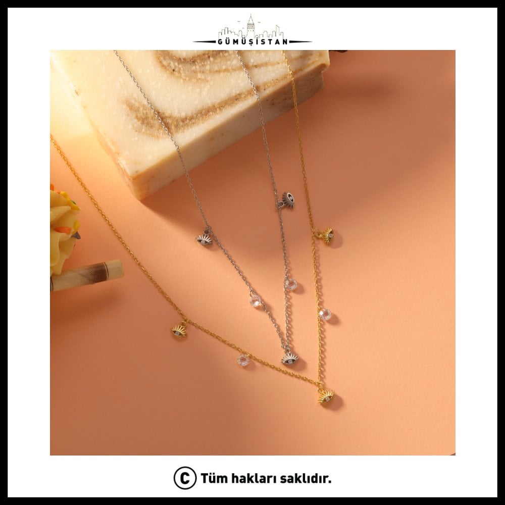925 Ayar Gümüş Nazarlı Zircon Şans Kolye