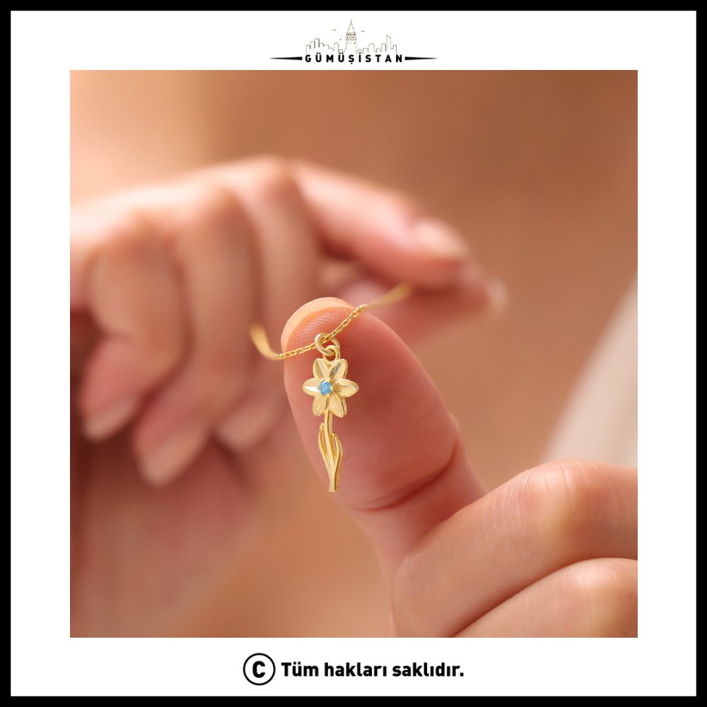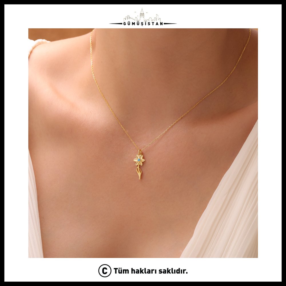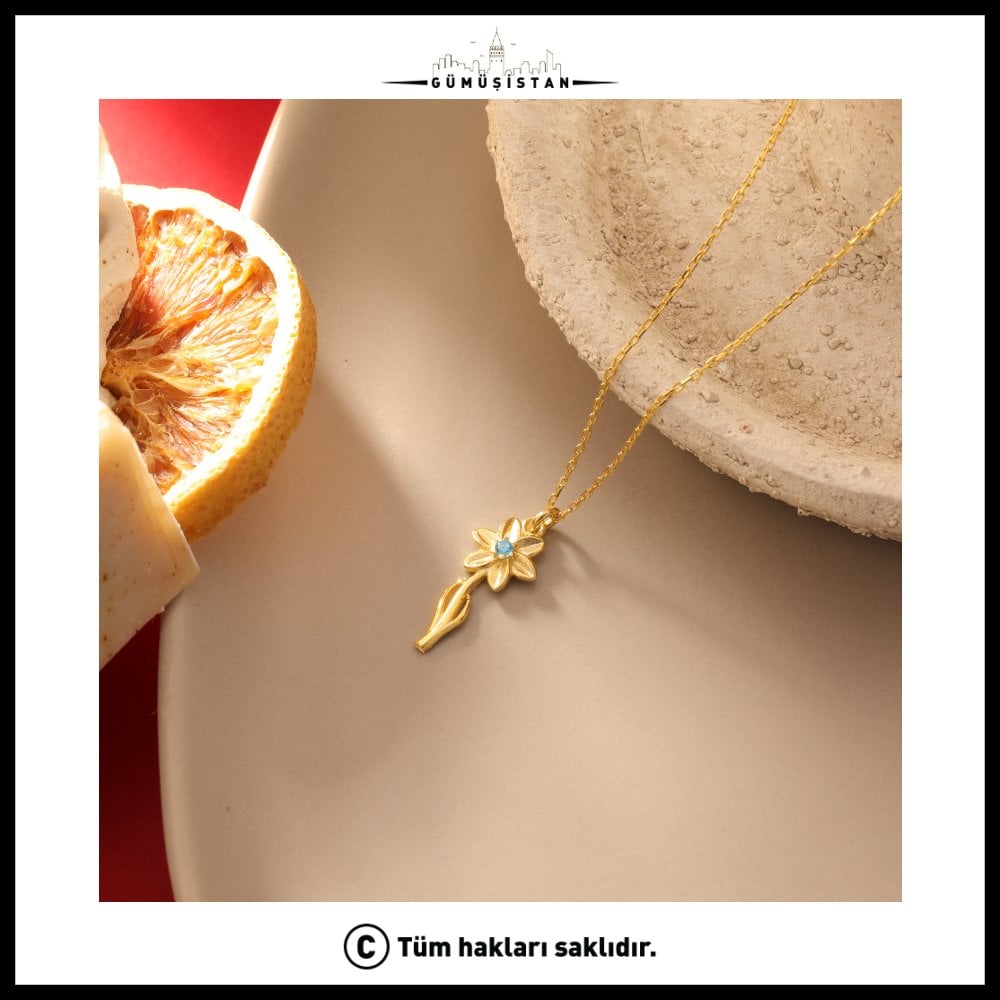 "925 Ayar Gümüş Nergis & Akuamarin Doğum Taşı Kolyesi"