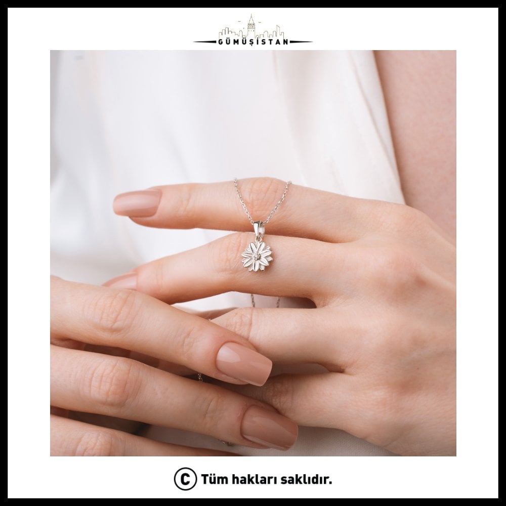 "925 Ayar Gümüş Papatya & Elmas Görünümlü Zirkon Kolyesi"