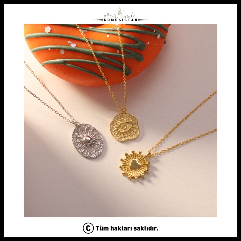 925 Ayar Gümüş Sembol Kalp Nazar Güneş Kolye