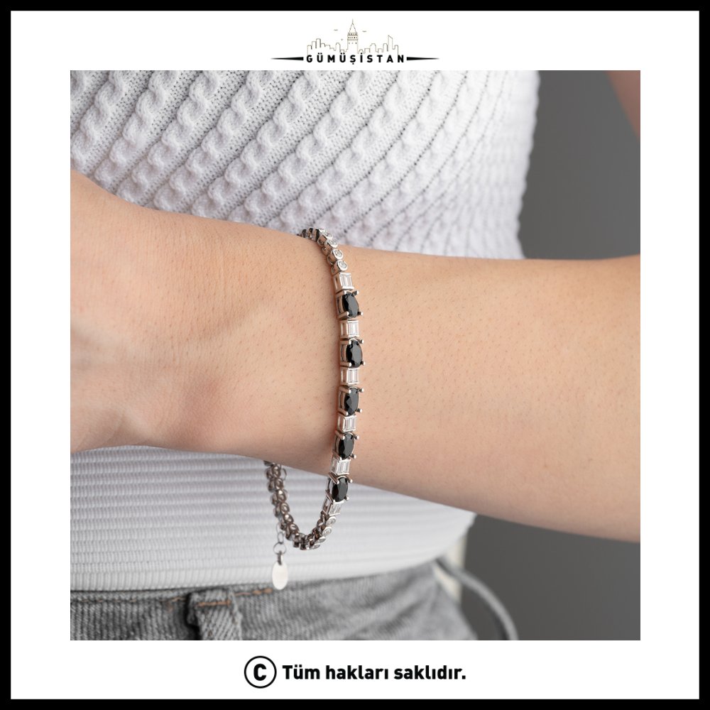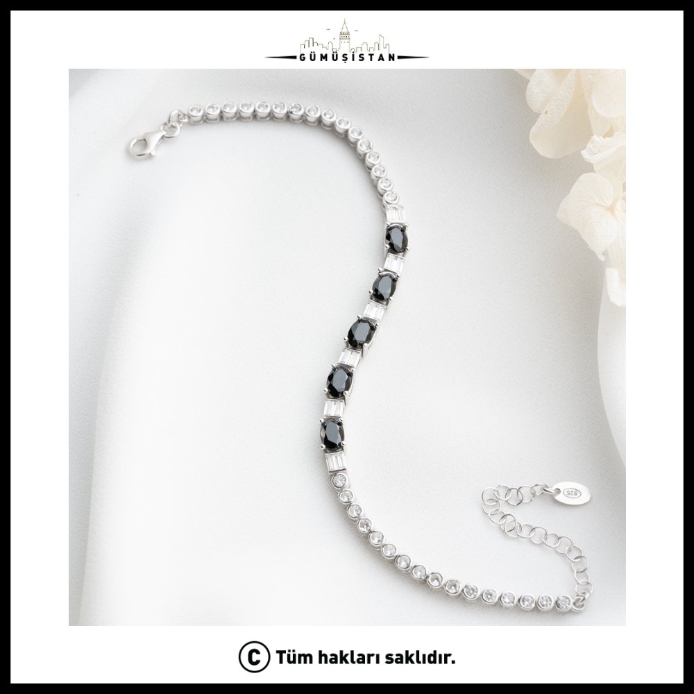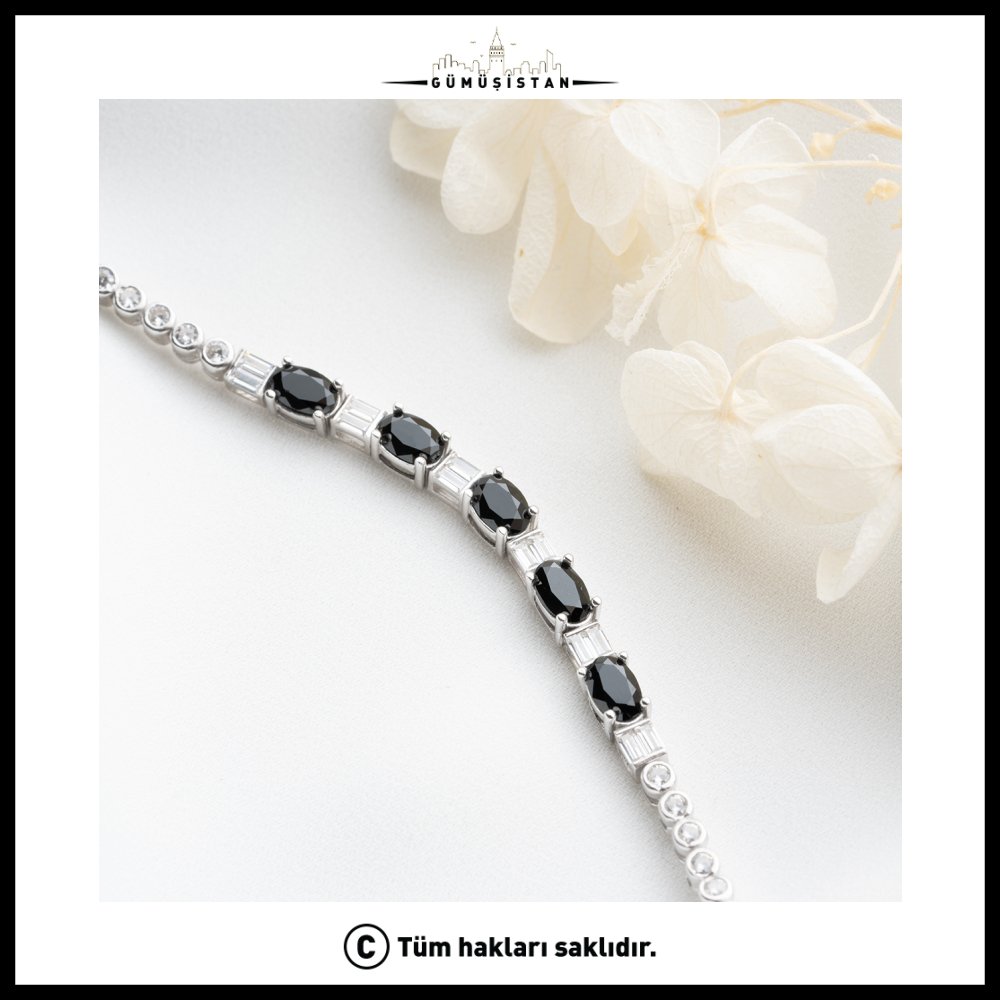 925 Ayar Gümüş Siyah Taşlı Özel Tasarım Bileklik Gümüş işleme sanatını, günümüz modern takı işlemeciliğiyle birleştirerek sizler için özenle tasarladık. Sadeliğiyle göze çarpan bu bilekliği özel günlerde ve günlük yaşamda keyifle takabilirsiniz. Modern tasarımıyla diğer takılarınızla birleştirebilirsiniz. Hem klasik hem spor tarza hitap eden vazgeçemeyeceğiniz takılarınız arasında yer alacak.