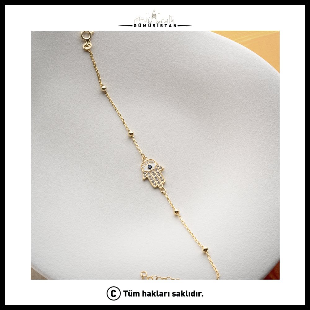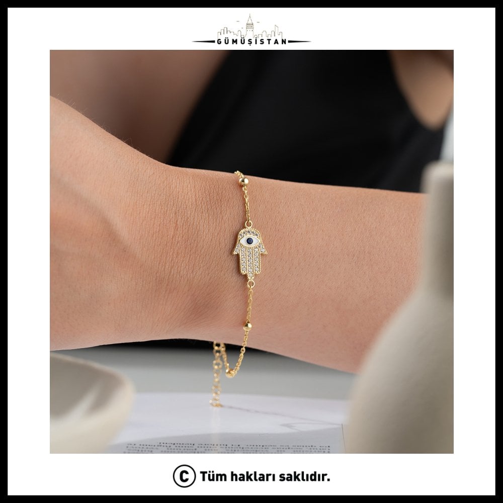 İnce işçilikle hazırlanan taş detaylar, bileğe zarif bir parlaklık katarken Fatmanın Eli figürü tasarıma derinlik ve karakter kazandırır. Günlük kullanım için ideal olan bu bileklik, hem sade kombinlerde şık bir detay olarak öne çıkar hem de özel günlerde anlamlı bir tamamlayıcı olur.