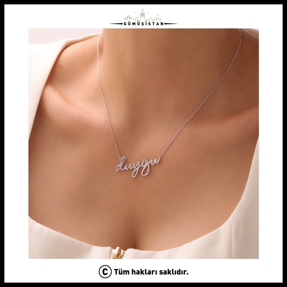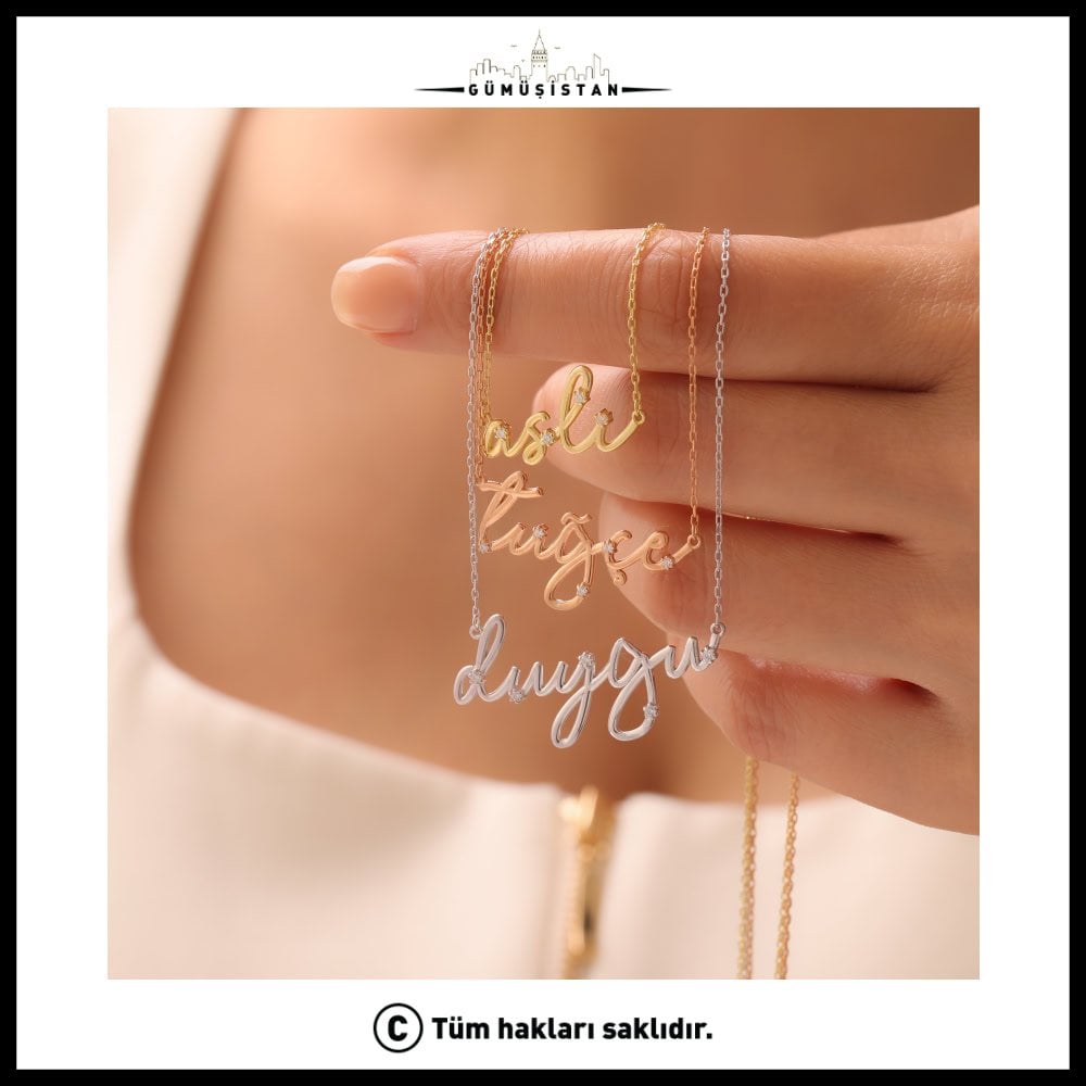925 Ayar Gümüş Zirkon Taşlı İmza İsimli Kolye