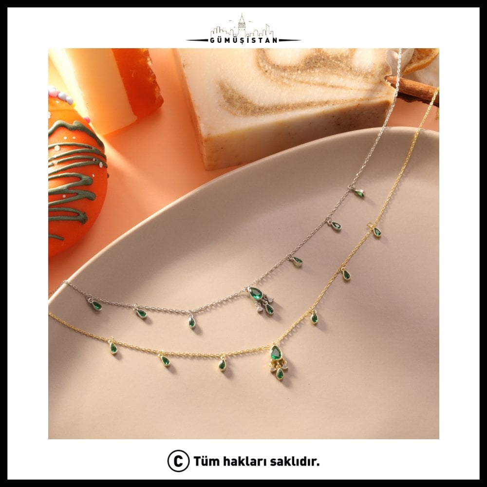 925 Ayar Gümüş Zümrüt Taşlı Salaş Kolye