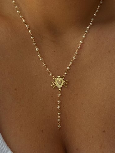 İncili & Kalp Simgeli Y Kolye - 925 Ayar Gümüş