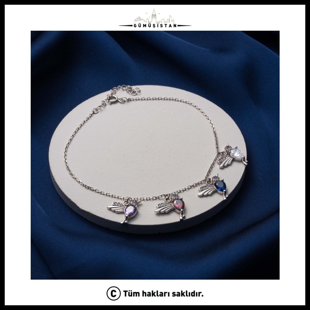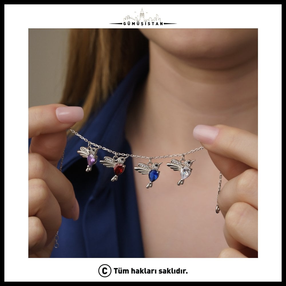 Zarif kuş figürleri ve canlı doğum taşı renkleriyle tasarlanan bu özel bileklik, hem şık hem de anlam yüklü bir aksesuardır. Altın renk kaplama bujiteri zincir üzerine yerleştirilen kuş figürleri, özgürlüğü, sevgiyi ve bağlılığı simgeler. Minimal ve modern tasarımı sayesinde günlük kombinlerden özel davet stiline kadar her ortamda rahatlıkla kullanılabilir.