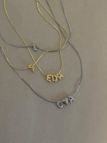 Minik Bombeli Harfli Kolye - 925 Ayar Gümüş