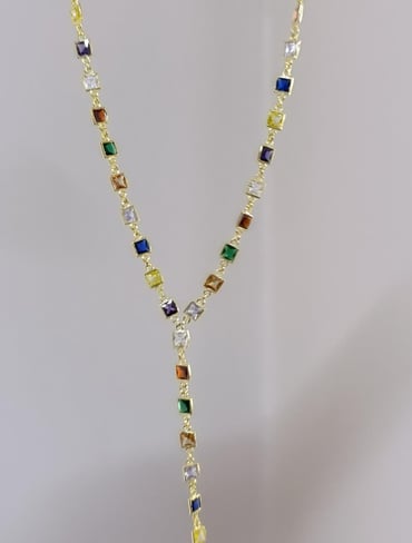 Renkli Kare Taşlı Y Zincir Kolye - 925 Ayar Gümüş Fiyatı ve özelliklerini Gumusistan.com'dan online olarak inceleyin!