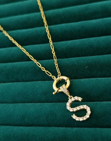 Taşlı Harfli Gemici Kilit Kolye - 925 Ayar Gümüş