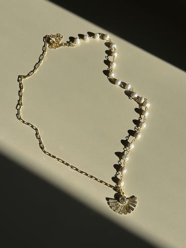 Yarısı İncili Yelpaze Kolye-925 Ayar Gümüş